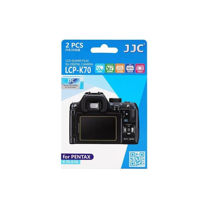 JJC LCP-K70 ekrāna aizsargs JJC LCP-K70 ekrāna aizsargs aizsargā jūsu Pentax K-70 vai K-S2 DSLR displeju no skrāpējumiem, putekļiem, pirkstu nospiedumiem un citiem netīrumiem. Ekrāna aizsargs ir īpaši pielāgots šīs kameras displejam. Foliju ir viegli uzlikt un atkal noņemt. Materiālam ir augsta gaismas caurlaidība, un tas minimāli atstaro gaismu. Tāpēc visa informācija uz ekrāna paliek skaidri redzama.