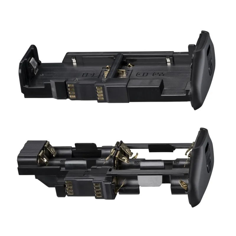 The walimex pro battery handle extends the battery life of your camera and omits cumbersome battery changes. The battery compartment offers the option to use up to two LP-E6 batteries or 8 AA batteries in addition to the camera powerpack. For easy operation of the camera during portrait orientation photographs, the handle is equipped with an ergonomically shaped, rubber coated portrait orientation trigger. Aperture and shutter settings can be adjusted with two dials. In addition, the battery handle is equipped with a button and a joystick for activating and selecting the AF measuring fields and with an infrared remote control for wireless triggering. Of course the battery handle also features a ј inch tripod connection for mounting on a tripod during longer shootings.