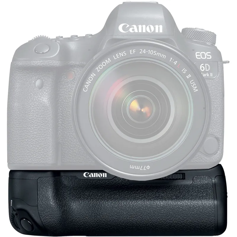 Canon BG-E11 ir opcionāls bateriju bloks ar uzlabotu ergonomiku, kas īpaši paredzēts kamerai Canon EOS 6D Mark II. Tas ļauj lietotājam pēc izvēles ievietot vienu vai divus LP‑E6 akumulatorus. Ar diviem akumulatoriem jau tā iespaidīgais akumulatora darbības laiks tiek divkāršots, pielīdzinot viena LP‑E6 akumulatora izmantošanai kamerā. Tas ir īpaši noderīgi, lietojot kameras video vai tiešā skata režīmu — darbības režīmus, kas patērē vairāk enerģijas. BG‑E11 nodrošina arī visas vertikālās uzņemšanas vadīklas, kuras ir iespējams neatkarīgi ieslēgt un izslēgt, tādējādi ļaujot fotogrāfam uzlabot kameras lietošanas ērtumu, it īpaši vertikālas orientācijas attēlu uzņemšanai. Šim bateriju blokam ir liels skaits vadības funkciju: slēdža poga, galvenais režīmu pārslēgs, multikontrolleris, AF punkta izvēles poga, AE/AF bloķēšanas poga, AF sākšanas poga un vairākfunkciju taustiņš.