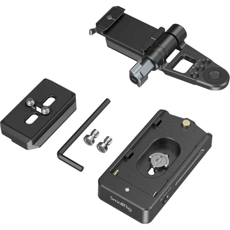 1 x NP F battery adapter plate 1 x Collapsible mounting plate 1 x Arca Swiss Quick Coupling Plate 2 x 1/4 20 Screw 1 x Allen key