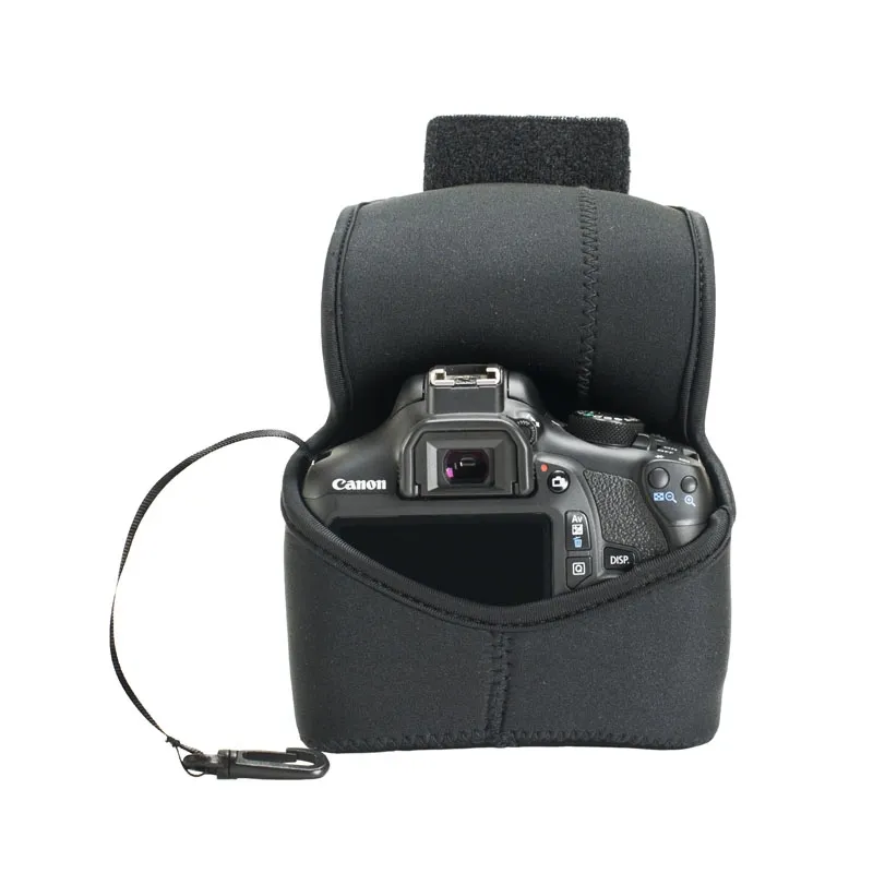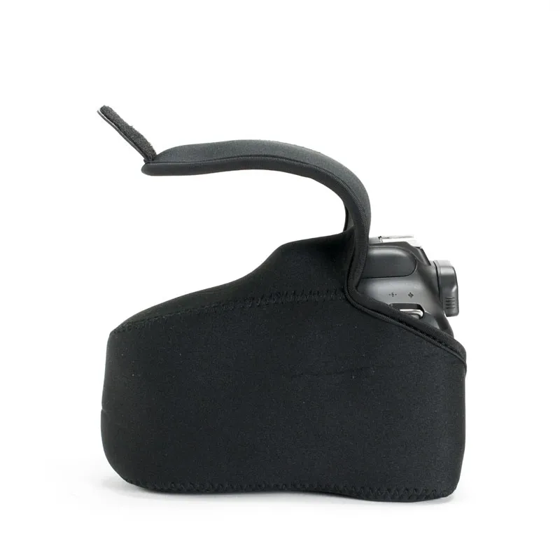 The Caruba Camera Case Neoprene Protection Bag L is a simple neoprene bag in which you can store your SLR or system camera with mounted lens. The bag protects your camera from dirt, dust and bumps. Thanks to the flap with Velcro,you always have quick access to your camera.