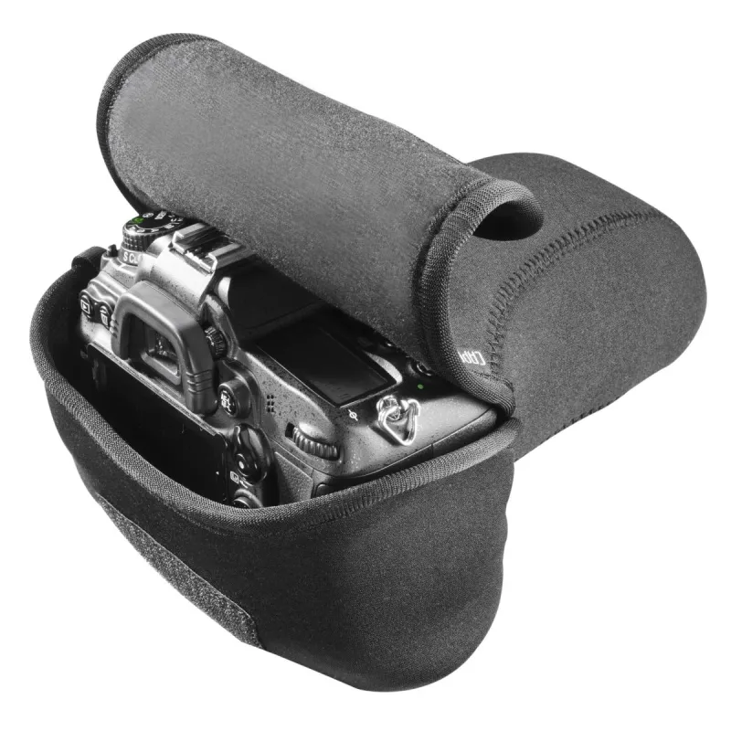 The neoprene camera bag is quick and easy to use. It is simply put over your camera and closed with Velcro, protecting your camera against splash water, scratches, and dust within seconds.
