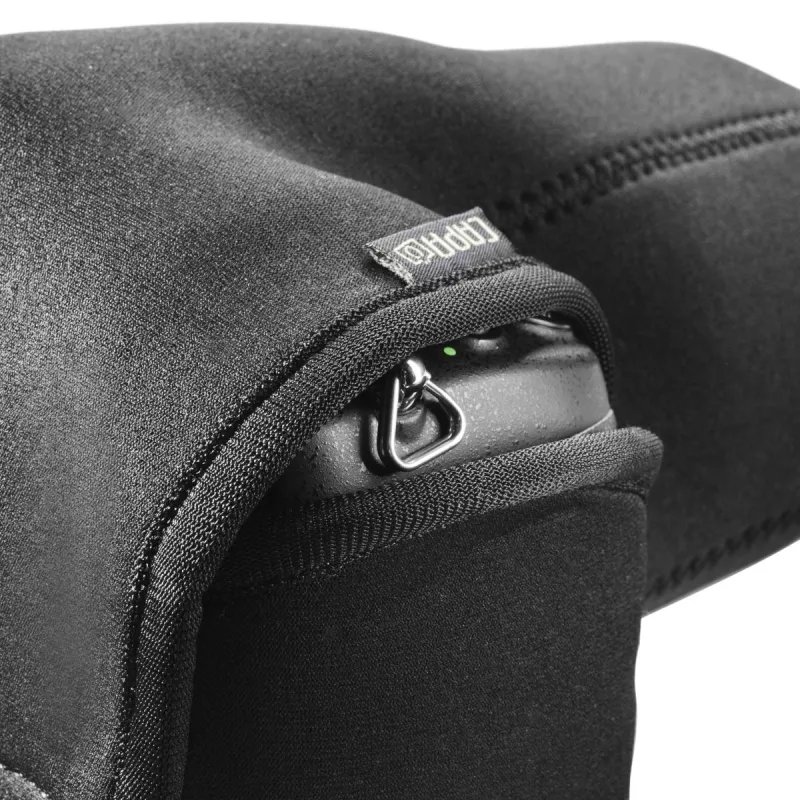 The camera as the most important tool of every photographer deserves secure and flexible protection. Water- and dirt-repellent neoprene is exactly the right material to ensure this protection. The velvet-like texture adapts to your camera and fits accurately.