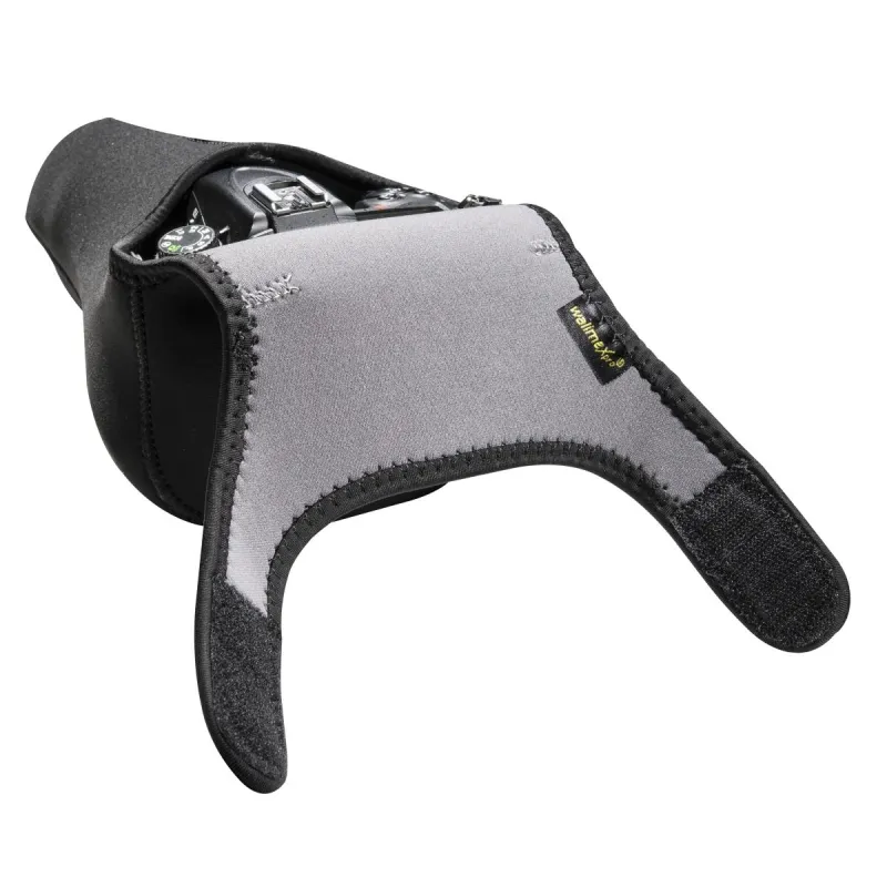 The camera as most important implement of every photographer deserves a secure and flexible protection. Neoprene, which is water and dirt repellent, is the right material to ensure this protection. Because the soft, velvety lining nestle to your camera very smoothly.
