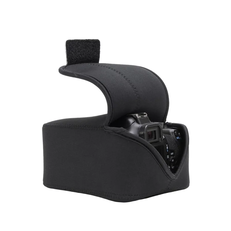 The Caruba Camera Case Neoprene Protection Bag XL is a simple neoprene bag in which you can store your SLR camera with mounted lens. The bag protects your camera from dirt, dust and bumps. Thanks to the flap with Velcro,you always have quick access to your camera.