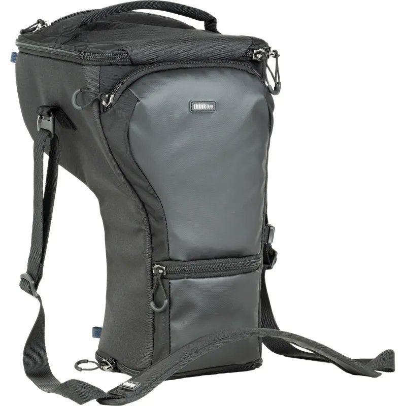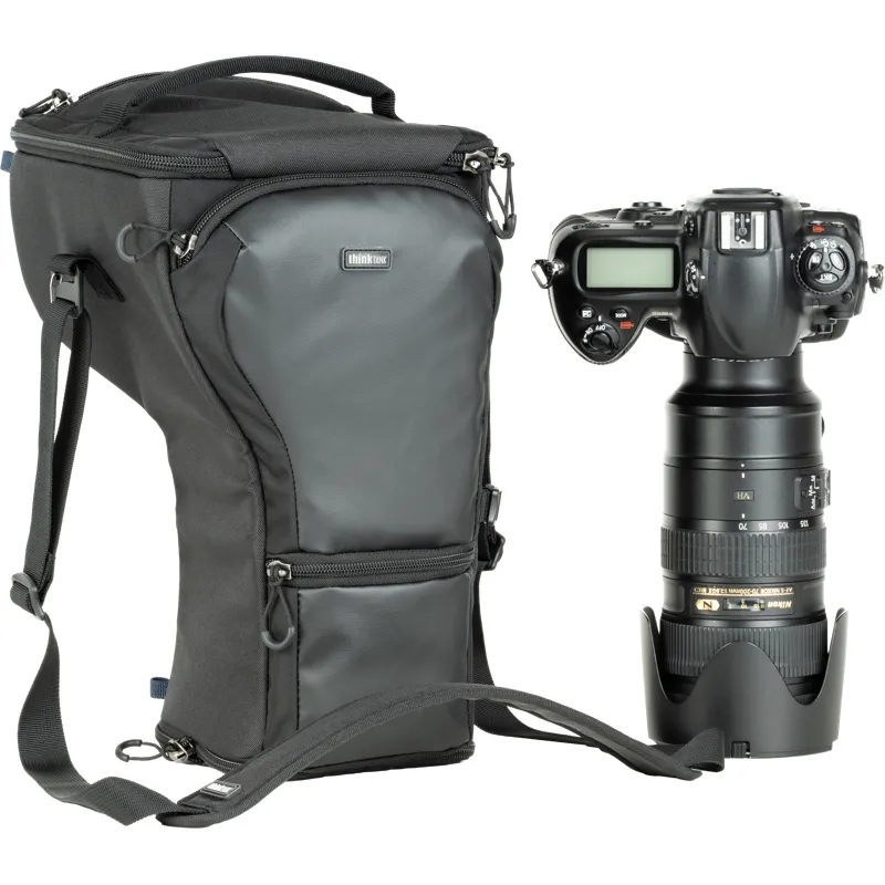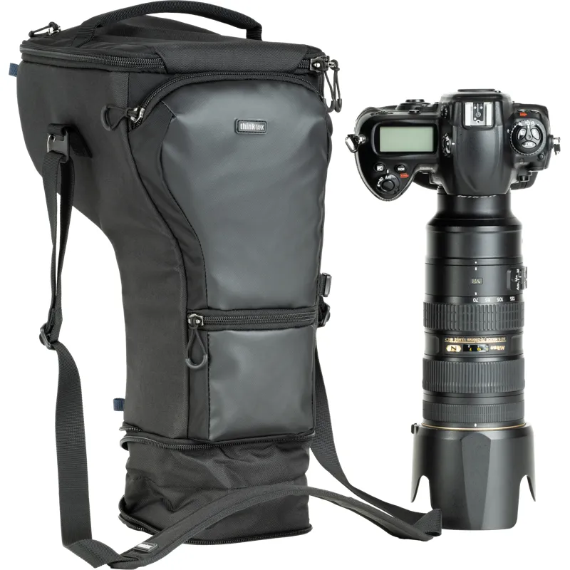 Šī somiņa ir izstrādāta gribēta kameru korpusa ar 70-200mm f/2.8 objektīvu, pielāgojot gan apgrieztas, gan fotografēšanas pozīcijas objektīva vāciņam.
