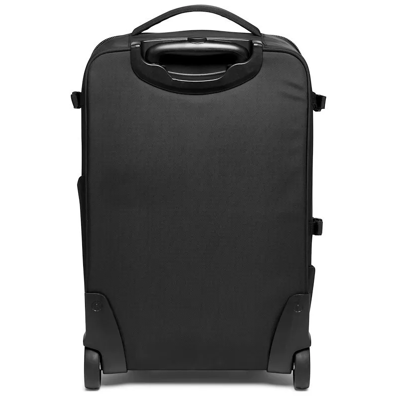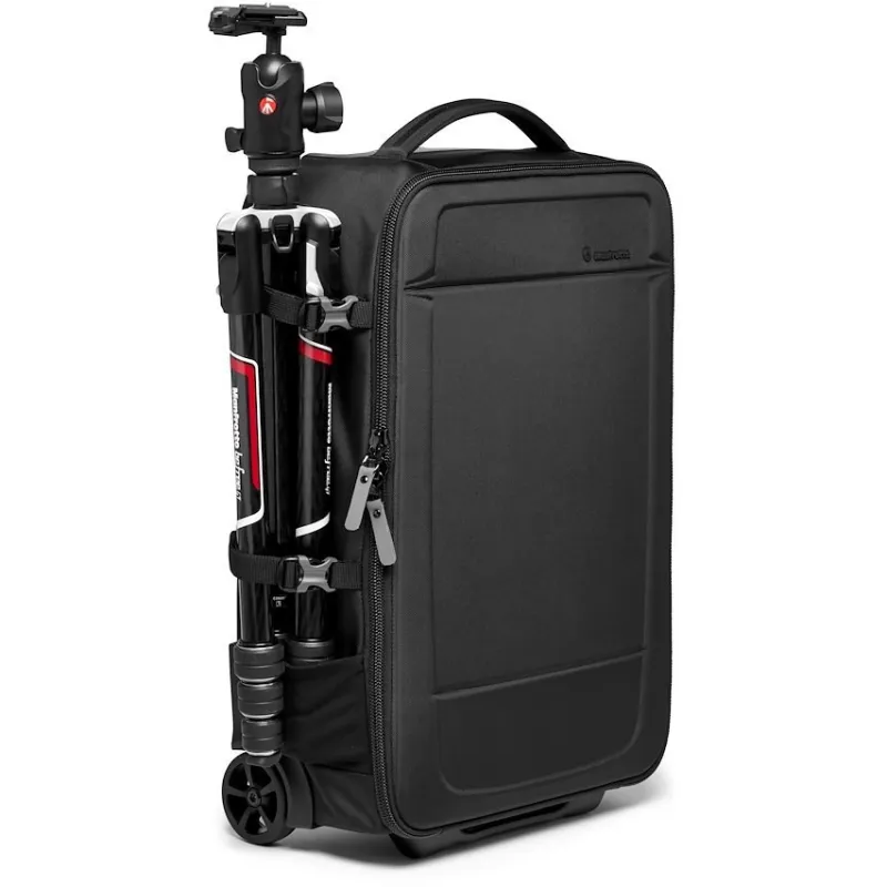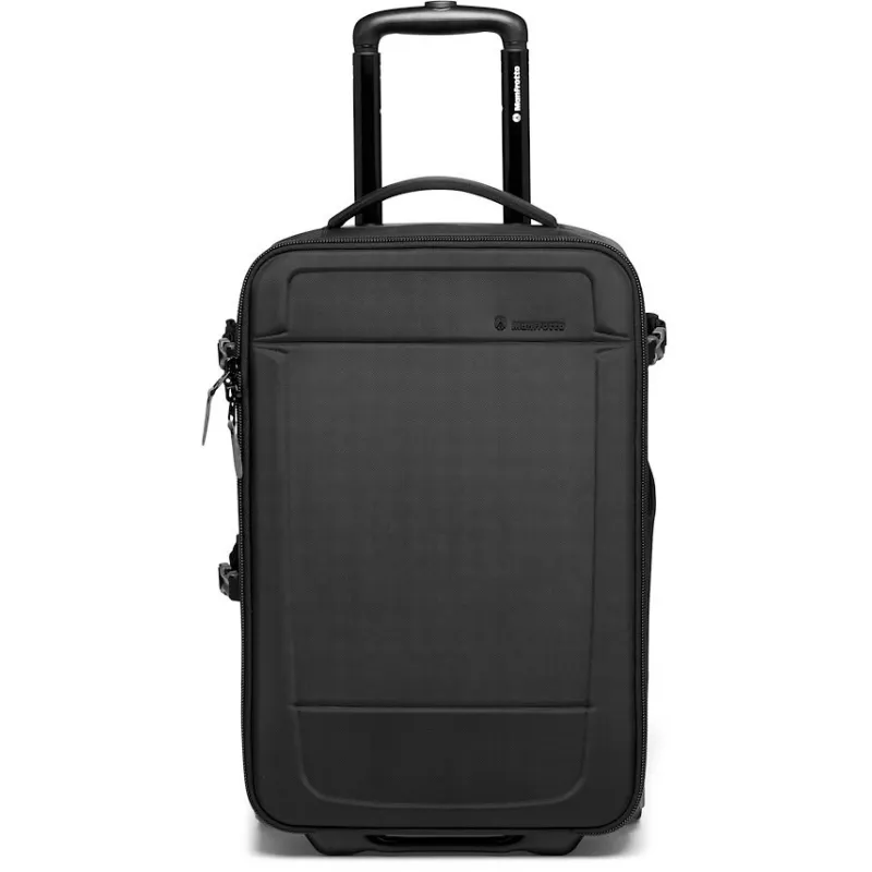 This two-wheel rolling bag fits international carry-on size restrictions* and can accommodate a mirrorless camera with 70-200 mm f/4, a second camera body and up to 5-6 lenses. The main full front opening features heavy duty 10mm YKK® zippers while the padded camera compartment features the brand-new Manfrotto M-Guard™ Protection System. Made of special high-density EVA foam, these special dividers provide exceptional shock absorbing response with a super slim profile. The customizable folding patterns allow maximum versatility to fully protect camera gear while maximizing the use of space.