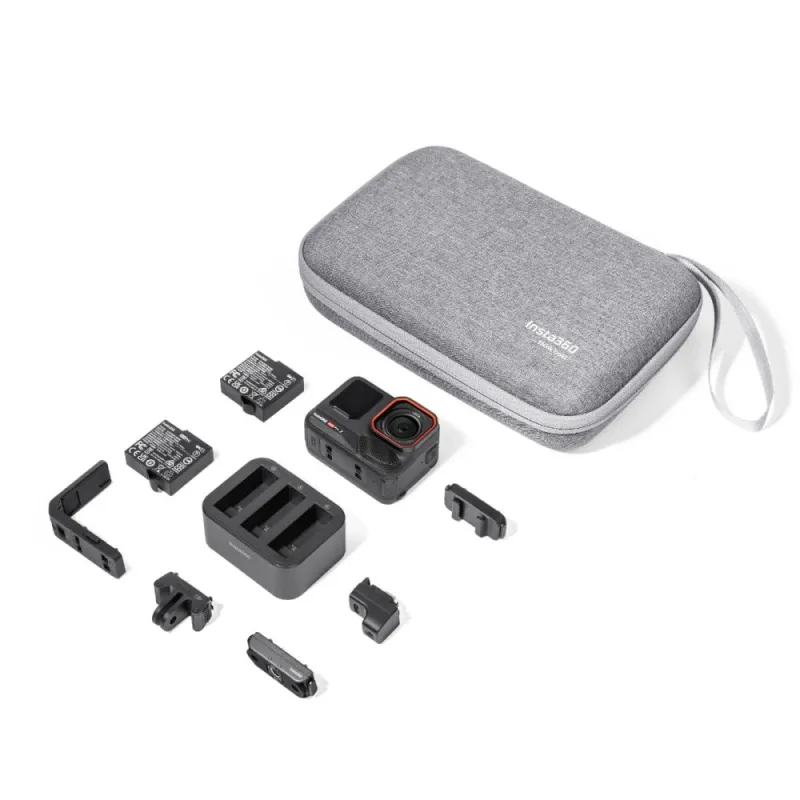 - Turiet savu Insta360 Ace Pro 2/Ace Pro/Ace, divas baterijas, auksto pēdu, ātrās atbrīvošanas stiprinājumu, ātrās uzlādes centru, mikrofona adapteri un citus piederumus.