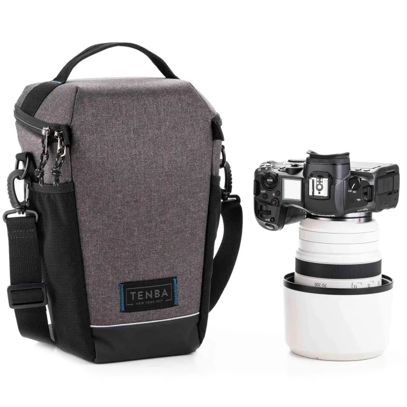 Tenba pelēkā Skyline V2 Top Load 9 kameru soma ir izstrādāta, lai aizsargātu bezspoguļa vai DSLR kameru ar objektīvu līdz 6", kā arī atmiņas kartes, akumulatorus un citus piederumus glabāšanas un transportēšanas laikā. Vāks atveras prom no ķermeņa, tāpēc tas netraucē, kad vēlaties ātri izņemt savu aprīkojumu. Šī soma ir izgatavota no ūdensnecaurlaidīga auduma un aprīkota ar YKK rāvējslēdzējiem. Pastiprinātās šuves nodrošina ilgtermiņa izturību. Paplašināmās sānu tīklveida kabatas ir izstiepjamas, lai tajās varētu ievietot ūdens pudeles vai citus piederumus. Iekšējā rāvējslēdzēja aizdares kabata ir ideāli piemērota atmiņas karšu un bateriju glabāšanai.