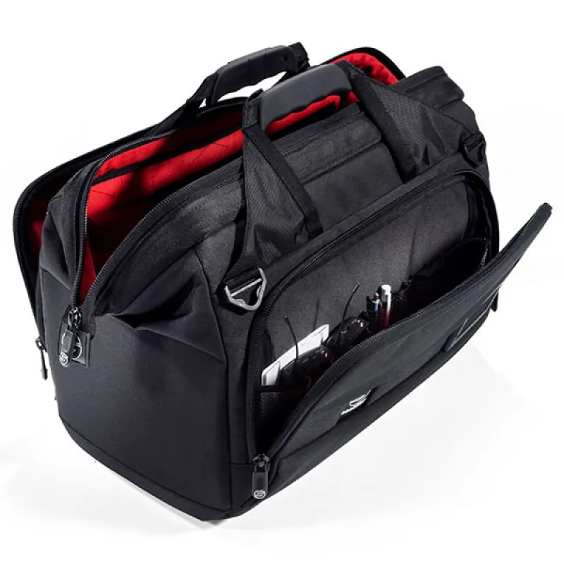 Standarta izmēra video kameru plecu soma ar inovatīvu dizainu, kas piedāvā īpaši plašu atvēršanu, lai turētu jūsu kameru ar pielikumiem.