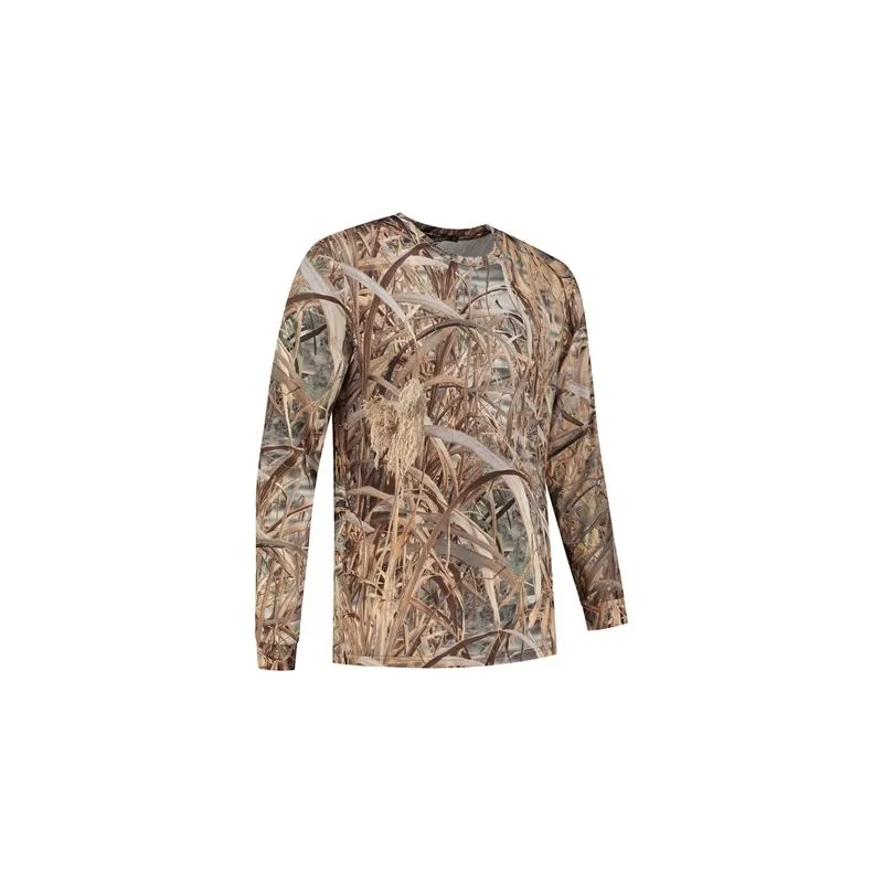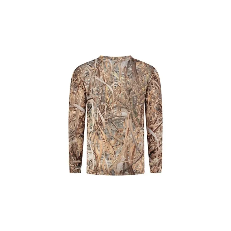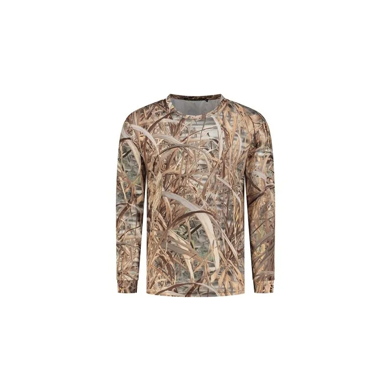 This T-shirt Longsleeve Reed Size M features a camouflage pattern in a realistic reed/grass print.