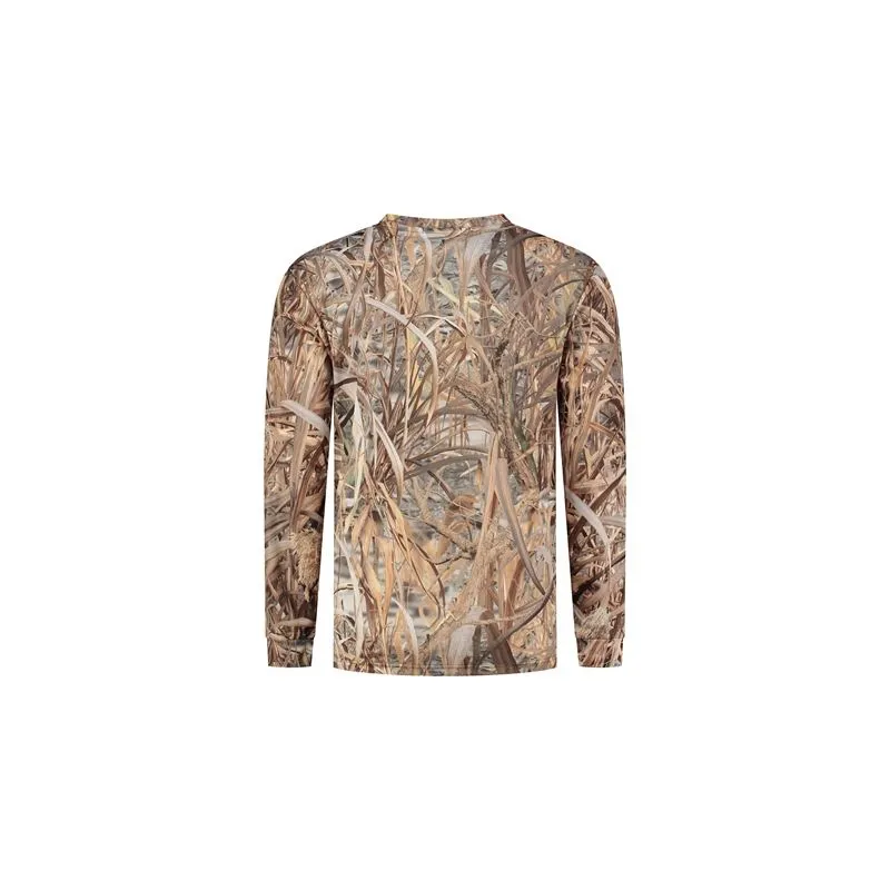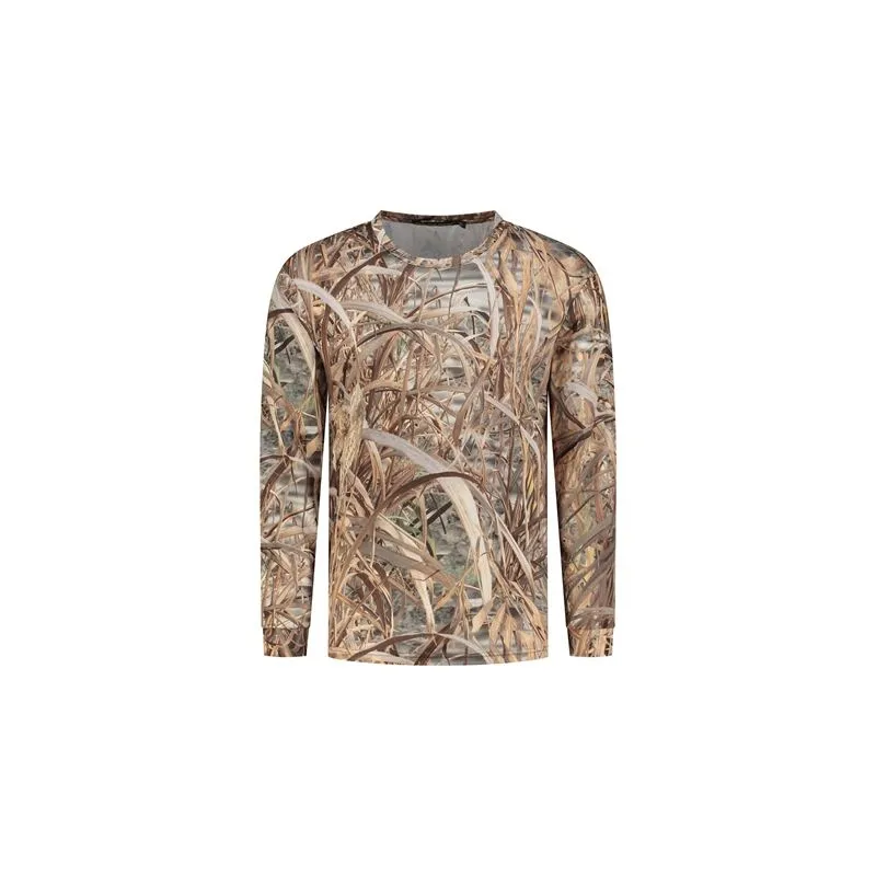 This T-shirt Longsleeve Reed Size L features a camouflage pattern in a realistic reed/grass print.