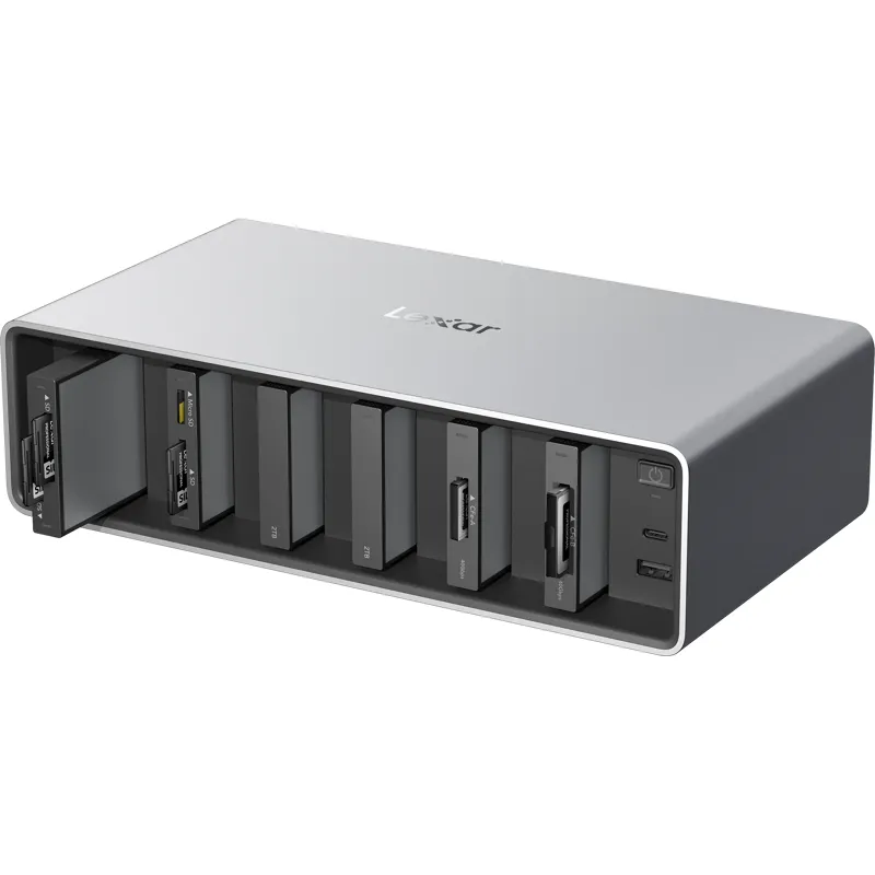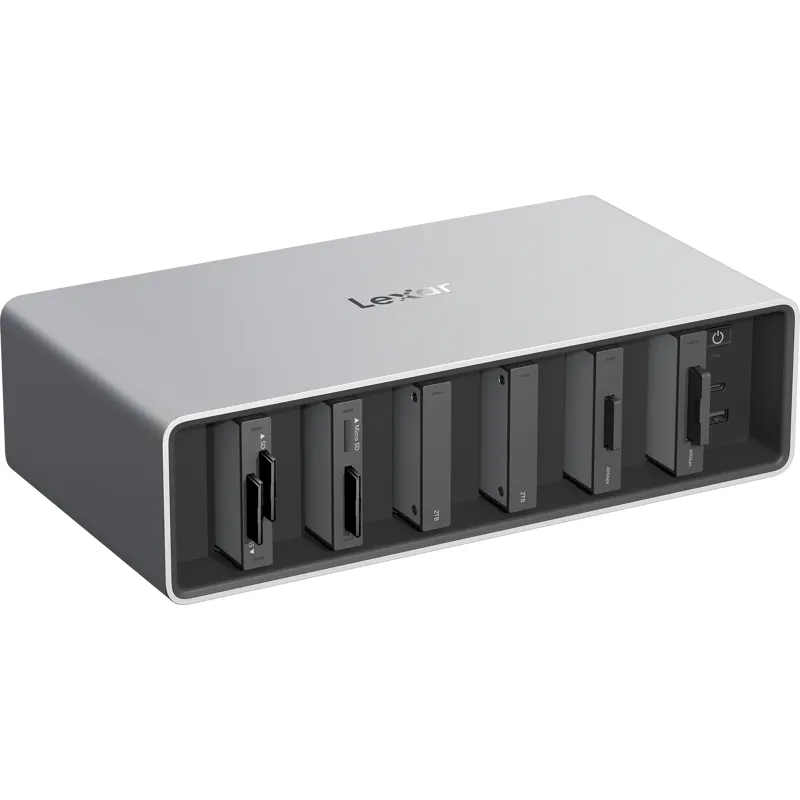 Apvienojiet līdz sešiem lasītājiem un portatīvajiem SSD moduļiem, lai izveidotu labāko darba plūsmu jūsu pēcapstrādes procesam. Savienojiet līdz 6 dokiem paplašinātām iespējām.