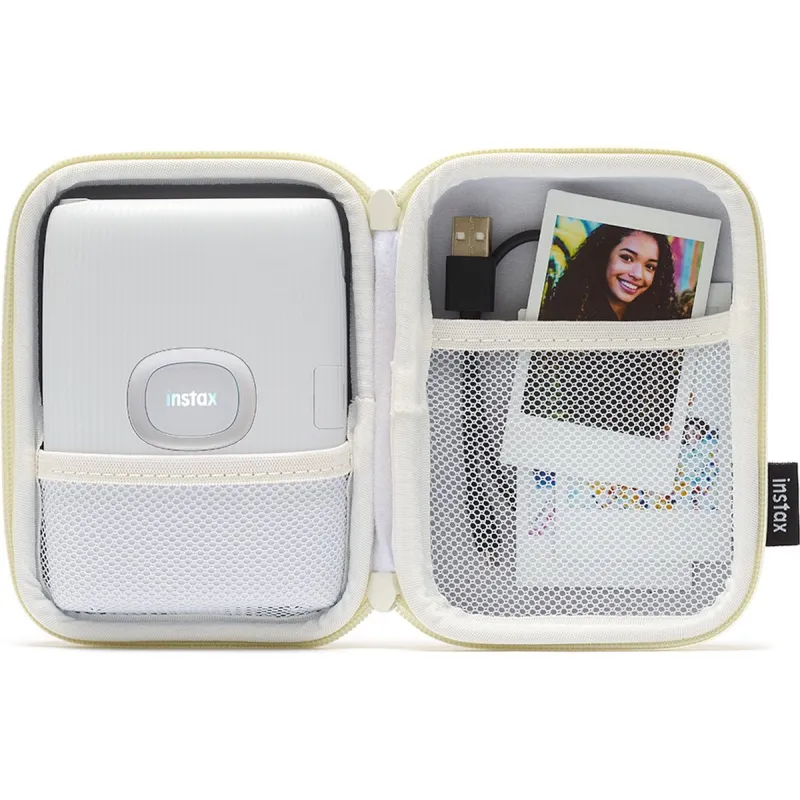 Fujifilm Instax Mini Link Case soma aizsargā fotoprinteri un kameru. Tā ir izgatavota no izturīga materiāla, un tai ir rāvējslēdzēja aizdare. Lielā atvere somā nodrošina ātru piekļuvi kamerai vai fotoprinterim. Futrālī ir pietiekami daudz vietas instax mini Link 2, lādēšanas kabelim un tikko izdrukātām fotogrāfijām..