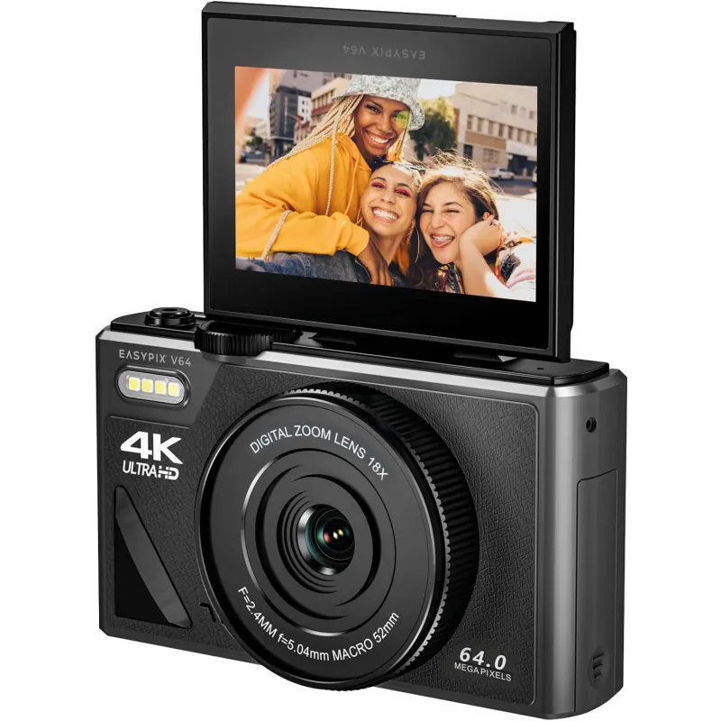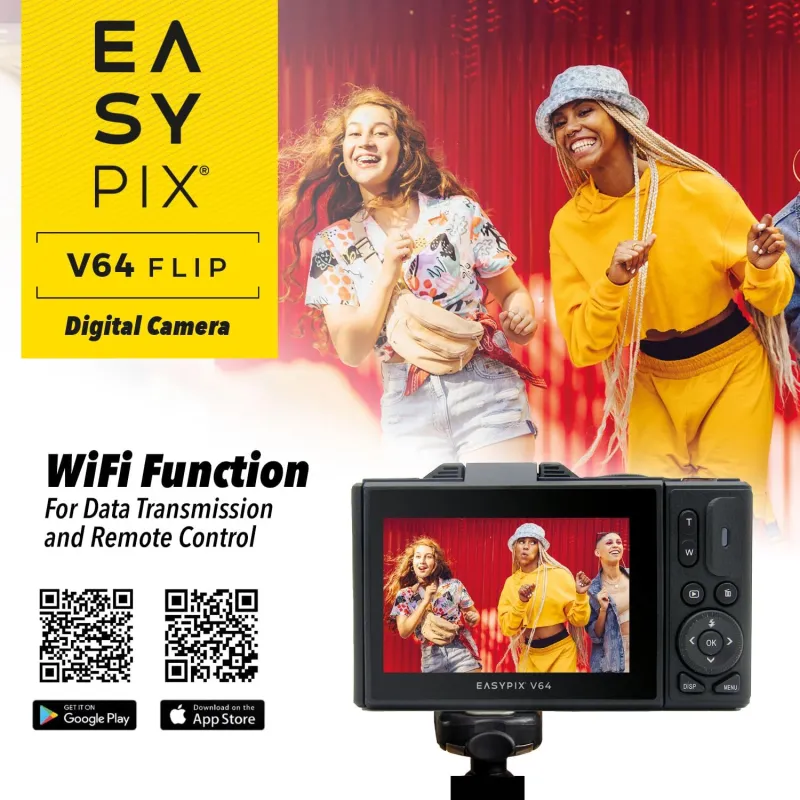 Ideāla selfie un vlogiem, Easypix V64 Flip ir lieliska digitālā kamera tiem, kas novērtē elastību un radošumu. Tās izcila iezīme ir 3 collu salokāmais ekrāns, kas ir ideāli piemērots selfie un vlogiem. Neatkarīgi no tā, vai tiek uzņemti spontāni attēli vai veidots profesionāls saturs, V64 Flip nodrošina iespaidīgus rezultātus.
