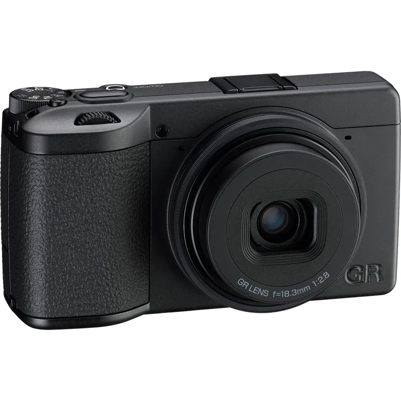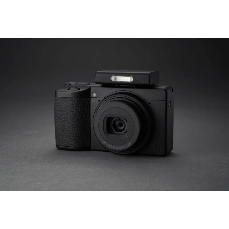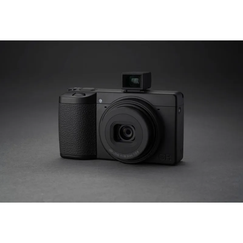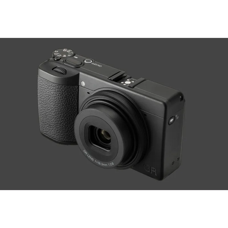 Kamera ir izstrādāta ap GR objektīvu, ar 18.3 mm F2.8 fokusa attālumu (aptuveni 28 mm 35 mm ekvivalentā). Optiskā konstrukcija ir 7 elementi 5 grupās, tostarp 3 asfēriskie elementi, lai saglabātu augstu asumu visā kadra platumā no centra līdz malām. Monohromā režīmā tas palīdz tekstūrām un smalkām līnijām palikt skaidrām, neizskatoties mākslīgi.