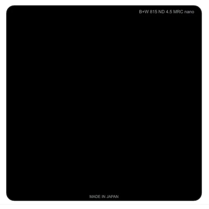 The B+W 100 x 100mm XS-Pro MRC-Nano 815 ND 4.5 Filter is a neutral density filter with a 32,768x filter factor that provides a 15-stop exposure reduction. It is compatible with a B+W 100mm Filter Holder and its 4.5 density creates a darkening of the entire image, allowing you to photograph with a wider aperture or slower shutter speed than normally required. By increasing your aperture or slowing your exposure time, you can control depth of field and convey movement more easily. Neutral density filters do not affect the coloration of the image and are ideal for pairing with other filters.