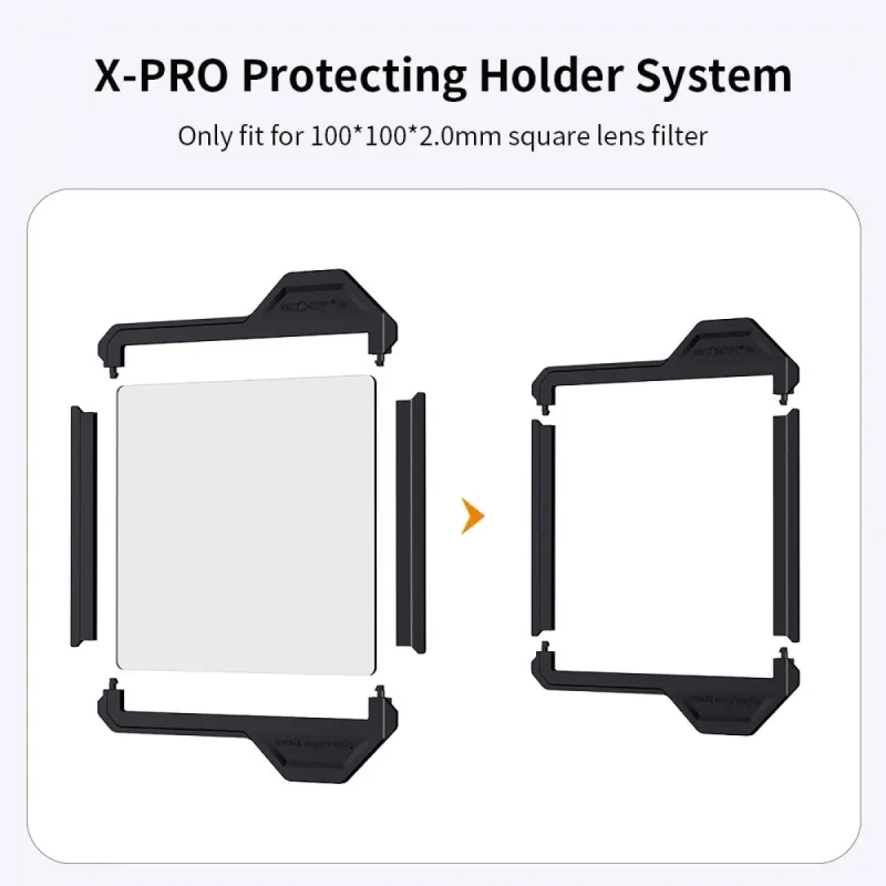 This lens accessory enhances the durability of square lenses, shielding them from potential damage. Additionally, it minimizes the risk of smudging the lens with fingerprints and ensures effortless disassembly. Compatible with square filters measuring 100x150x2.0mm in size, it is specifically designed for K&F Concept Nano X Pro Series filters. Please note that frequent disassembly and reassembly are discouraged for optimal performance.
