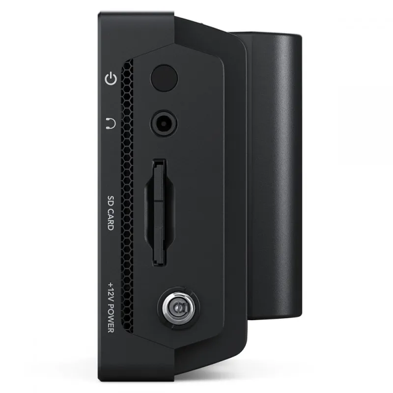 There are two models of Blackmagic Video Assist 12G, with each model including an innovative touch screen user interface with deck controls, as well as a large screen to view recordings. The Blackmagic Video Assist 7" 12G model also includes 2 media slots, while both the 5" and 7" models include 12G-SDI for high frame rate Ultra HD, analog inputs for audio, USB-C external disk recording, plus a front panel speaker and side mounted headphone jack. Customers also get 2 rear battery slots for mounting Sony L-Series batteries, so customers have enough power for the brighter HDR screens and higher speed Ultra HD electronics. A 12v universal power supply is included for studio or on location use.