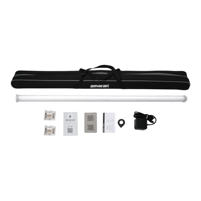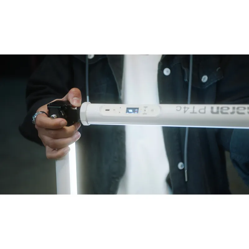 Amaran PT4c is an innovative tube-shaped LED lamp with a length of 120 cm. Its excellent light quality, wide range of color temperature settings (2700 K - 10000 K), adjustment of hue, saturation and intensity within HSI space, 16 independent LED control zones and "Pixel FX" effects, make it an excellent choice for video makers, photographers and set designers. The built-in rechargeable battery guarantees up to 170 minutes of wireless operation at full power. Remote control via the Sidus Link mobile app and compatibility with the DMX standard further expand the possibilities for controlling settings. The Amaran PT4c also offers great mounting versatility (including magnetic mounts, eyebolt and 3/8" threads). Main Product Features tube-shaped lamp with a length of 120 cm created with filmmakers, photographers, set designers and light designers in mind high CRI, TLCI, CQS and SSI ratios for excellent color reproduction extensive color temperature adjustment range of 2700 K - 10000 K color control within the HSI space 16 independent light control zones 9 special FX effects (including police car, paparazzi, campfire, TV) 7 transition effects ("Pixel FX") between different sections of LEDs (including penetration, fire, rainbow) Built-in 5200 mAh battery up to 170 minutes of operation using full power up to 776 minutes of operation using 10% power full charging time is about 3 h (Power Delivery 32 W) remote control via the advanced Sidus Link mobile app Sidus Mesh integration allowing you to control various Aputure and Amaran lights with your smartphone or tablet compatible with DMX standard (USB-C / DMX cable must be purchased) equipped with 2 female 3/8 "mounting threads included 2 magnetic mounts for lamp installation on metal surfaces possibility to set the lamp in 5 different positions on a flat surface (0º, 45º, 90º, 135º, 180º) in the set you will also find: power supply, carrying bag and eyebolt for hanging the lamp Multiple applications The Amaran PT4c LED lamp is an excellent choice for creative filmmakers and photographers. The 120 cm long lightsaber is perfect as an effect light, filling in, highlighting details or complementing your productions with a colorful "wow" effect. Create unique backgrounds, build unique sets or paint with light ("light painting") using long exposure times. If you are involved in the production of music videos or commercials, want to take care of the unique atmosphere of your vlogs or need to complement your videos with vivid colors, the Amaran PT4c LED lamp will be an excellent choice. Excellent quality of light Thanks to the use of state-of-the-art RGBWW LEDs, the Amaran PT4c lamp provides top quality light, no matter what color available within the HSI space you decide to choose. The device will allow you to adjust the hue, saturation and intensity. Faithful color rendering is confirmed by high CRI (95), TLCI (98) and SSI Tungsten (85) ratings. Adjustable color temperature The Amaran PT4c LED lamp allows you to adjust the color temperature of the light from 2700 K to 10000 K. Such flexibility is sure to make your work on set easier, allowing you to instantly adjust the device's parameters to changing lighting conditions. With just a few clicks, you can produce light that can be warmer than that emitted by tungsten lamps or cooler than typical daylight. Built-in battery When you choose the Amaran PT4c LED lamp, you don't have to worry about tangled cables. The built-in 5200 mAh (77Wh) lithium-ion battery will allow you to enjoy 170 minutes of wireless operation, using the full power of the device. If you reduce the brightness to 10%, you will gain more than 12 hours of operation on a single charge! Thanks to the Power Delivery technology (32W), it will take about 3 hours for the device to fully replenish its energy. Of course, the kit does not lack a charger, compatible with the USB-C port. Multiple mounting methods Although the lamp itself has a rounded tube shape, its ends are secured with hexagonal caps that allow it to be placed on a flat surface in 5 different positions. There are also 2 3/8" threads on the housing of the device, which will allow you to install the lightsaber on a tripod or mount. The mounting points are also compatible with the included eyebolt, allowing you to hang the lamp. You will also receive 2 magnetic mounts along with the unit. All this means that in almost any space you will find a way to create a luminous scenery with the Amaran PT4c lamp. Technology "Pixel FX" The Amaran PT4c lamp offers 16 independent light control zones. This means that adjacent LED modules can shine in different colors. The device also offers 7 built-in "Pixel FX" transition effects. Unique light animations such as penetration, rainbow, fire or color cycles will allow you to show even more creativity when working on video footage. remote control You can control the Amaran PT4c lamp not only from the built-in control panel. The device is compatible with the powerful Sidus Link mobile app. You download it from Google Play or the App Store at no extra charge. With the app, the lamp can become part of a larger ecosystem of light sources. It is with its help that you will program advanced combinations of transitions, as well as personalize settings for each group of LEDs. The lamp is also compatible with the DMX standard. USB-C / DMX adapter MUST be purchased separately. Specification model: Amaran PT4c light color temperature: 2700 K - 10000 K CRI (for 5600 K): 95 TLCI (for 5600 K): 98 CQS (for 5600 K): 96 TM-30 RF (for 5600 K): 92 TM-30 RG (for 5600 K): 100 SSI (Tungsten): 85 SSI (D56): 75 maximum output power: 23 watts maximum power consumption: 32 W number of sections ("pixel mapping"): 16 luminous flux: 1402 lm angle of illumination: 180º charging port: USB-C (PD 32 W) power supply: USB PD 5 V / 9 V / 12 V / 15 V / 20 V Power cable length: 1.8 m rechargeable battery: 14.8 V, 5200 mAh (77 Wh) Max operating time on a single charge: 10% power: 776 
