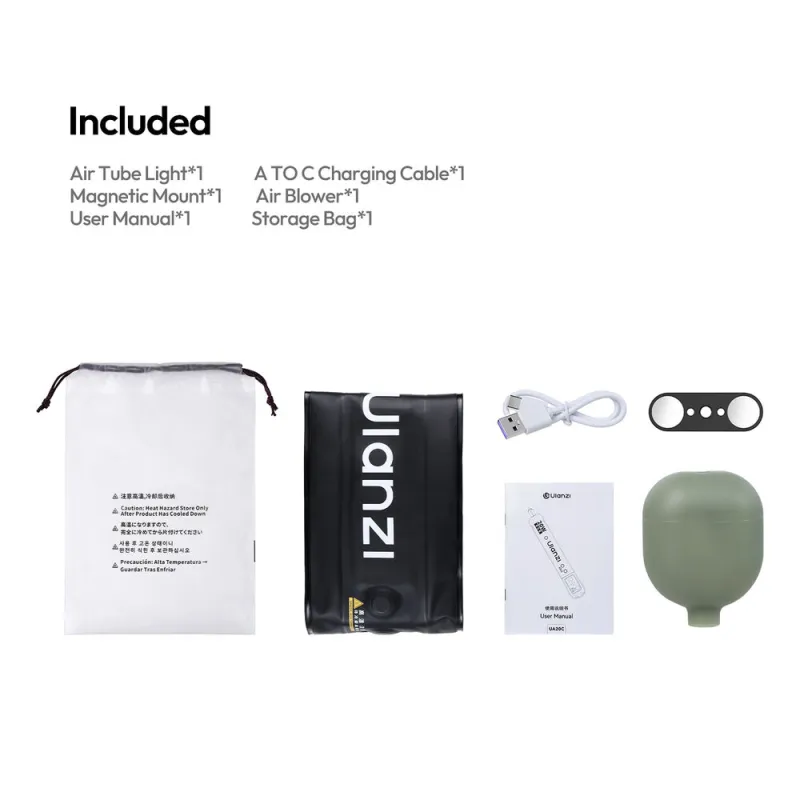 Pievienojiet jautru krāsu apgaismojumu jebkur, izmantojot uzpūšamo UA20C RGB magnētisko gaisa cauruli. Ar pilnu RGB krāsu kontroli radītājiem, video un foto scenārijiem, UA20C nodrošina paplašinātu CCT diapazonu no 1800 līdz 10,000K ar CRI vērtējumu 95, kā arī 359 nokrāsu, piesātinājuma un spilgtuma kontrole. Iebūvētais 2500mAh akumulators nodrošina gaismu līdz 55 minūtēm pie 100% spilgtuma un uzlādējas caur USB-C. Atrodiet dažādus apgaismojuma efektus, lai radītu dažādas noskaņas un dinamiskas ainas. Iebūvētie N52 magnēti ļauj viegli piestiprināt pie lielākās daļas metāla virsmām. Ulanzi iekļauj uzlādes kabeli, ērto gaisa pūtēju, magnētisko stiprinājumu un skrāpējumiem izturīgu somu vieglai uzglabāšanai, kurp dodaties.