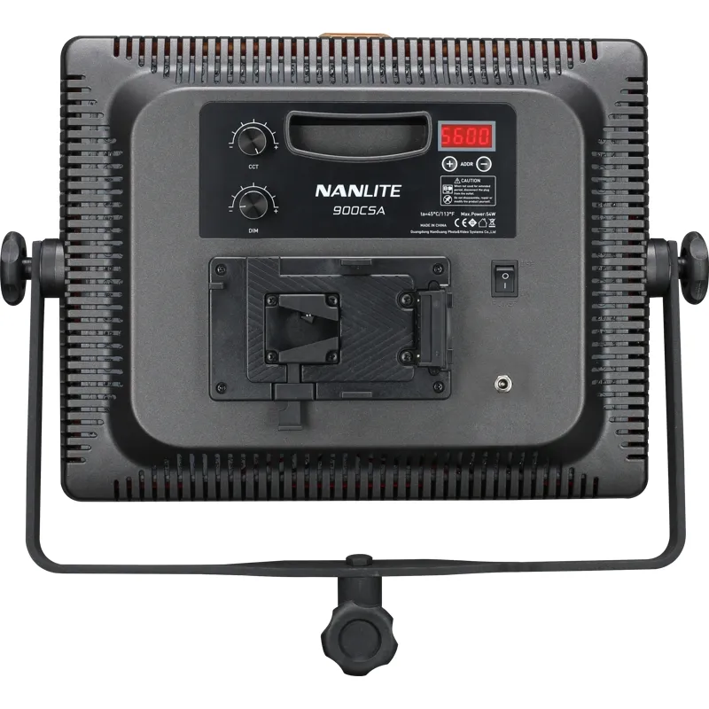 The rear facing controls enable you to dial in brightness from 0-100% and temperature from warm to cold (3200K-5600K). Plus with the included barn doors, the 900CSA's output can be quickly shaped and adjusted.