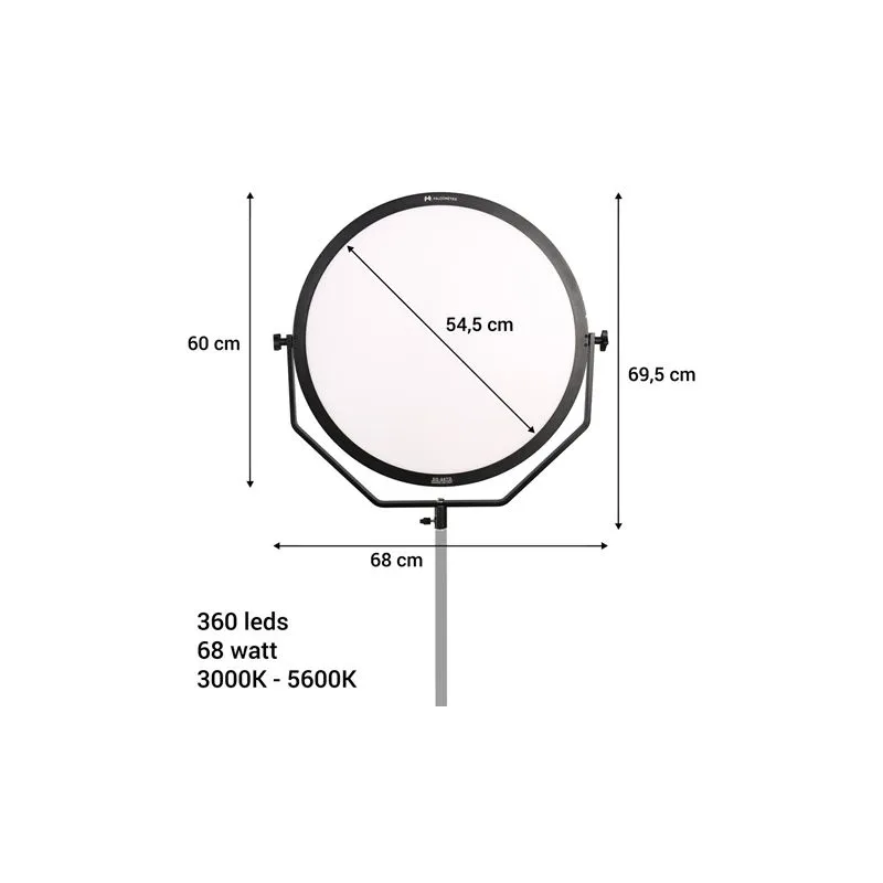 With this set you will receive two SO-68TD LED lamps from the popular Falcon Eyes Sophiez series. The lamp is equipped with 120 small LED lights (not individually visible), which together provide an output of 68 Watt. Because of the high CRI value of 95, you can always count on natural colours. You can set the colour temperature yourself from 3000K (warm yellow light) to 5600K (daylight), and everything in between. In addition, you can also determine the power of the lamp yourself. By means of optionally available batteries, you can also use the lamp in places where no mains power is available, for example outside.