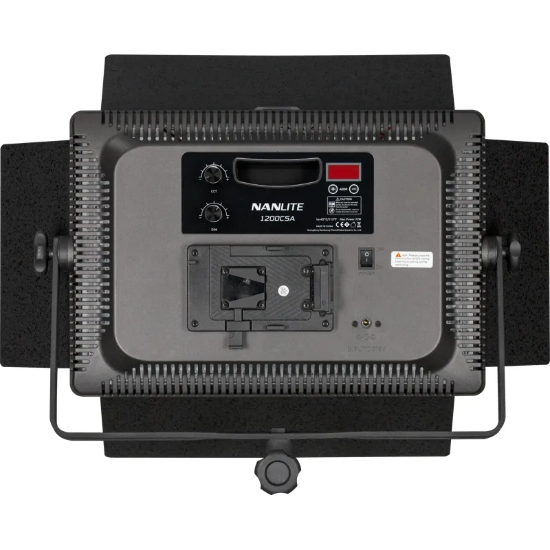 The rear facing controls enable you to dial in brightness from 0-100% and temperature from warm to cold (3200K-5600K). Plus with the included barn doors, the 1200CSA's output can be quickly shaped and adjusted.