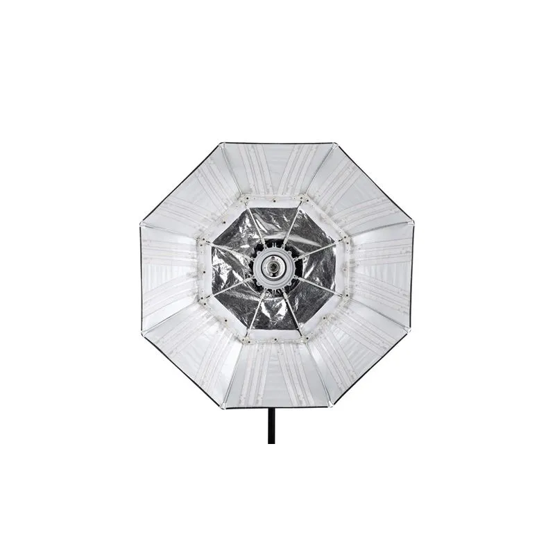 The RX-782 from Falcon Eyes is a combination of a RGB LED paneel with a foldable beautydish. In addition to cold and warm light, the RX-782 also offers the complete RGB spectrum. For all colors, you can count on the highest quality light, with a CRI value of 95. 1440 LEDs provide a total power of 200W. The color temperature varies from 2700K to 9999K. Besides control with the buttons on the back, you can also control the RX-782 with DMX. The dimensions are 100 cm diamet. No tripod is included. You can find a suitable tripod among the optional accessories.
