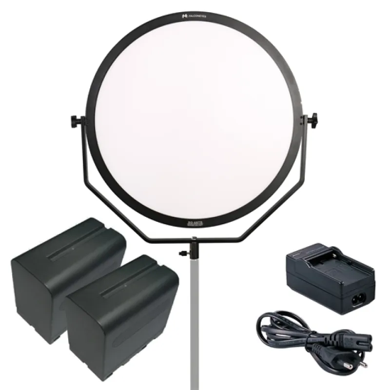 This combi set consists of the Falcon Eyes SO-68TDX II, two NP-F batteries and the supporting NP-F battery charger. With this set you have everything you need to use the Sophiez lamp at any location.