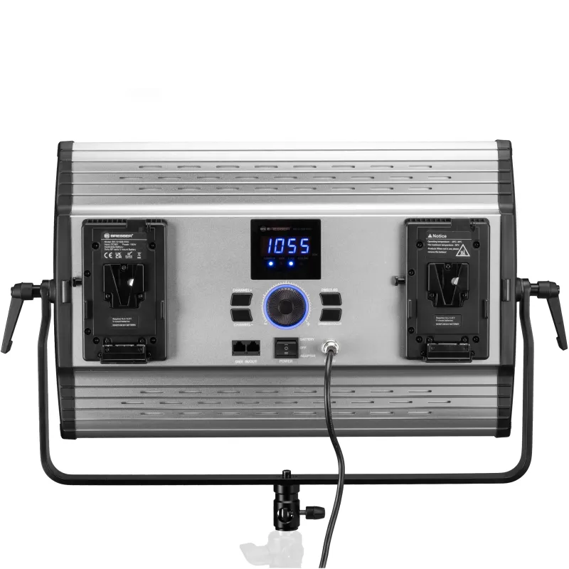 Jaudīgs un zema trokšņa līmeņa profesionāls LED Bi-Colour paneļa gaismeklis ar tālvadības pulti un V-Lock akumulatora savienojumu.