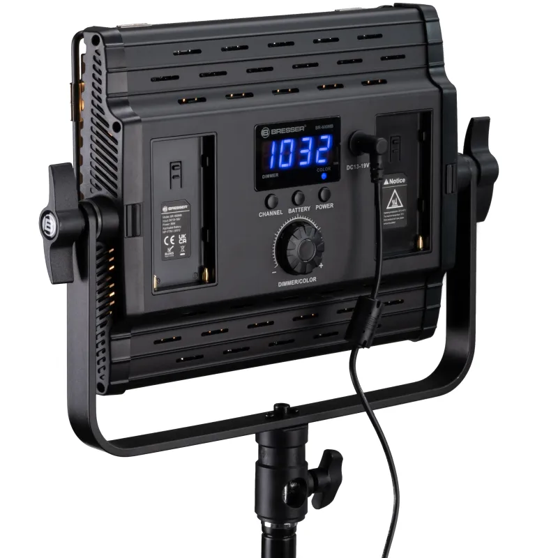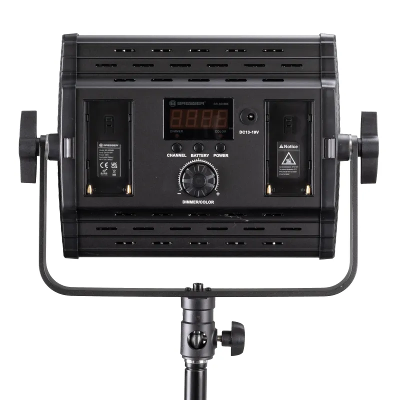 BRESSER BR-600MB dienas gaismas lampas ar 36 W jaudu var darbināt, izmantojot elektrotīkla strāvu vai arī ērti ar pēc izvēles pieejamām NP-F sērijas uzlādējamām baterijām. Ar 4320 lūmenu gaismas jaudu paneļa lampas nodrošina pietiekamu apgaismojumu jebkurā situācijā, un tās var viegli regulēt no 10 % līdz 100 %, un visus iestatījumus var ērti veikt ar 2,4 GHz tālvadības pulti.