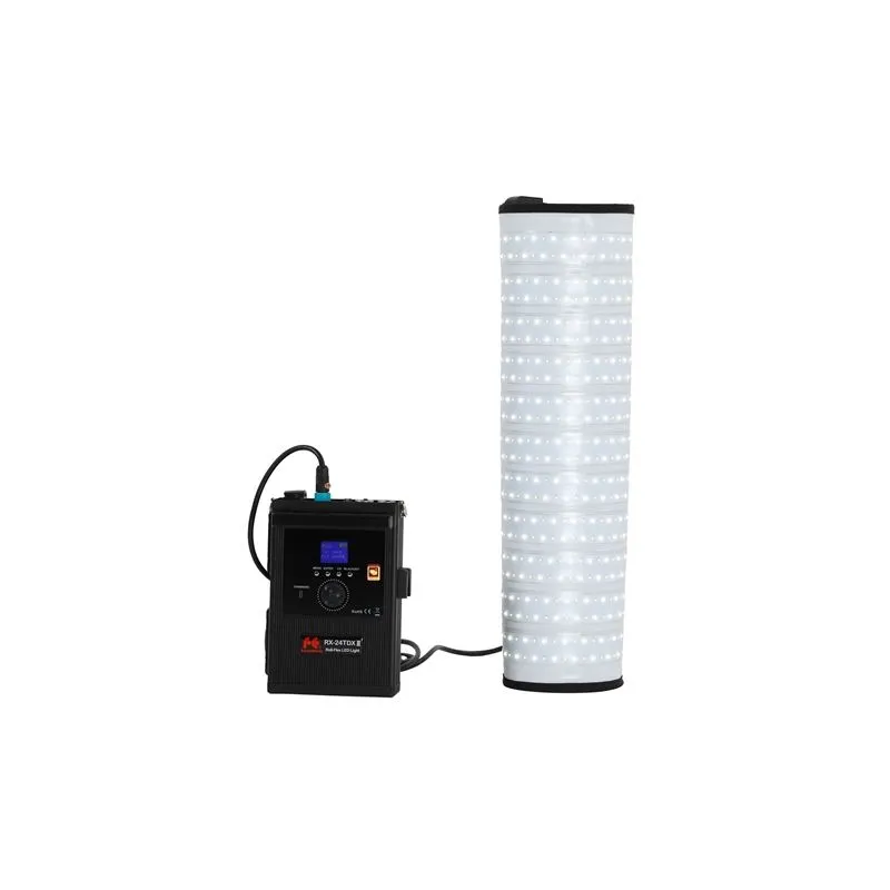 Patiesībā jūs varat izmantot RX-24TDX III jebkur. Tas ir tāpēc, ka RX-24TDX III darbojas gan ar strāvas kontaktligzdu, gan ar akumulatoru. Ir iebūvēts barošanas avots. Tātad ir 1 kabelis no strāvas kontaktligzdas līdz kontrollerim un 1 kabelis no kontrollera uz LED paneli. Jums nav jāpērk kabeļi atsevišķi, jo mēs tos piegādājam ar kontrolieri. Ja nevarat atrast kontaktligzdu, RX-24TDX III arī darbojas ar akumulatoru. Jūs pievienojat 2 universālas V-mount baterijas ar kontrolieri, lai nodrošinātu īpaši ilgu akumulatora darbības laiku. Vai jums vēl nav v-mount akumulatoru? Mēs tos esam jums sagatavojuši cilnē “Izvēles piederumi”.
