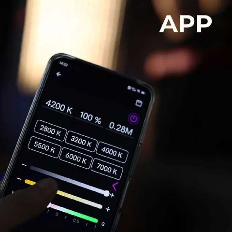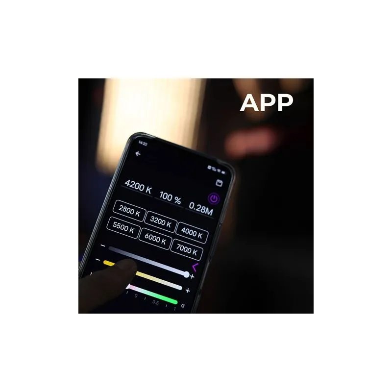 When you work for a production company or as a freelancer, every day is different. One day you're working on location at a customer's site. And the other day you work from your studio. You have complete freedom in how you control the RX-24TDX III. In the studio, you connect the RX-24TDX III to a universal DMX panel. This is based on the DMX512 protocol, with a 5-pin XLR connection. Of course, you also operate the lamp with the included controller. The illuminated display shows which settings are active. If the RX-24TDX III is out of reach, or if you want to control several RX-24TDX III panels simultaneously, you can use an app. You can download it for free on your iPhone or Android smartphone. It allows you to control RX-24TDX III from up to 20 meters away.