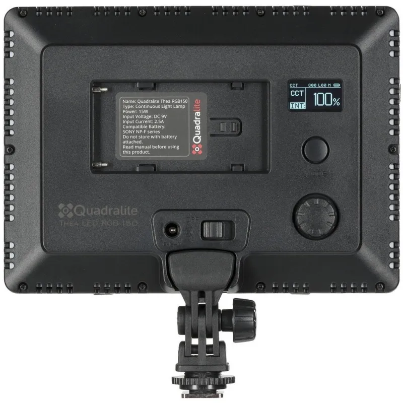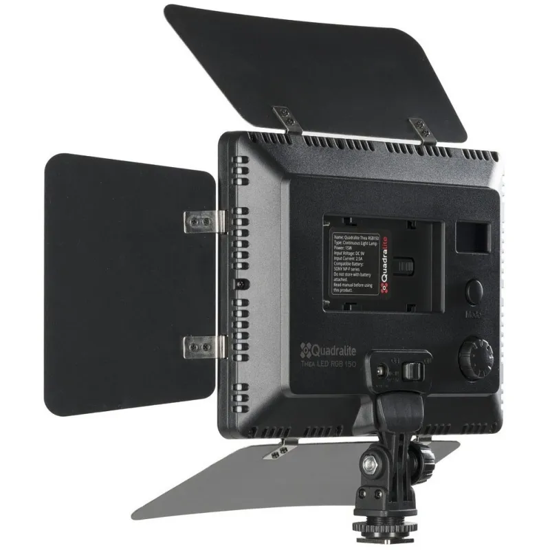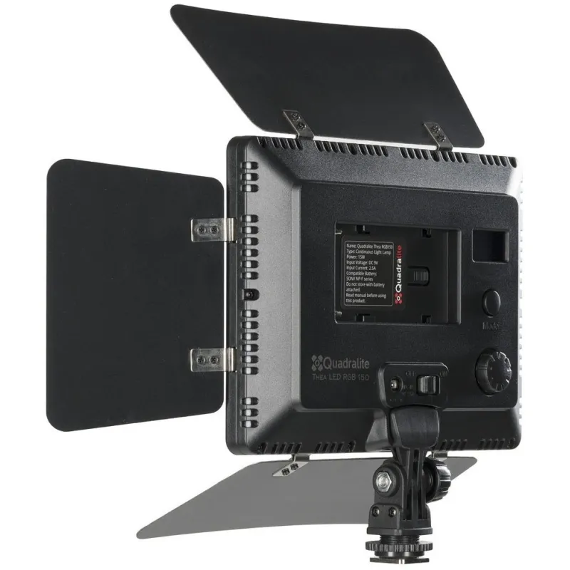Quadralite Thea RGB 150 LED panelis atšķiras no citiem produktiem ar spēju atveidot gandrīz jebkuru RGB krāsu. Thea RGB paneli var tieši savienot ar viedtālruni, izmantojot īpašu Quadralite lietotni, kas ļauj jums kontrolēt visus tā iestatījumus, izmantojot viedtālruni. Šī funkcija ir ļoti ērta, ja fotografēšanas laikā iestatāt augstu lampu sistēmu, jo jūs nevarēsiet tās tradicionāli kontrolēt, izmantojot aizmugurējo vadības paneli.