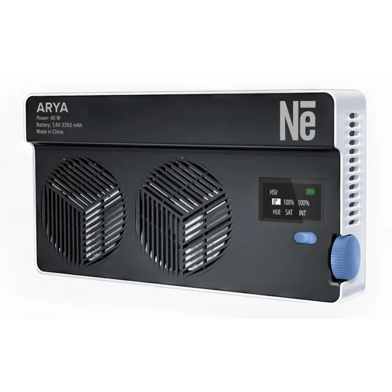 Newell Arya RGB 40 W ir kompakta LED lampa, kas paredzēta fotogrāfiem un videomakeriem, kuriem nepieciešams augsts spilgtums un kabatas izmēri. Ar izmēriem 15.3 x 8.2 x 2.8 cm, tā piedāvā iespaidīgu 40 W jaudu un gaismas intensitāti līdz 16,800 luks. Trīs darba režīmi - Bi-Color, HSV un 24 FX efekti - nodrošina pilnīgu kontroli pār krāsu temperatūru, krāsu un radošajiem efektiem. Augsts CRI (97) un TLCI (97) vērtējums garantē precīzu krāsu atveidošanu. Komplektā ietilpst silikona difuzors un aukstā pēda adapteris uzmontēšanai uz kameru vai statīvu. Iebūvēta akumulatora un USB-C uzlādes iespēja nodrošina ērtu, bezvadu darbību. Arya ir ideāla izvēle fotogrāfiem, filmu veidotājiem, influenceriem, vlogeriem, straumētājiem un skaistumkopšanas profesionāļiem.