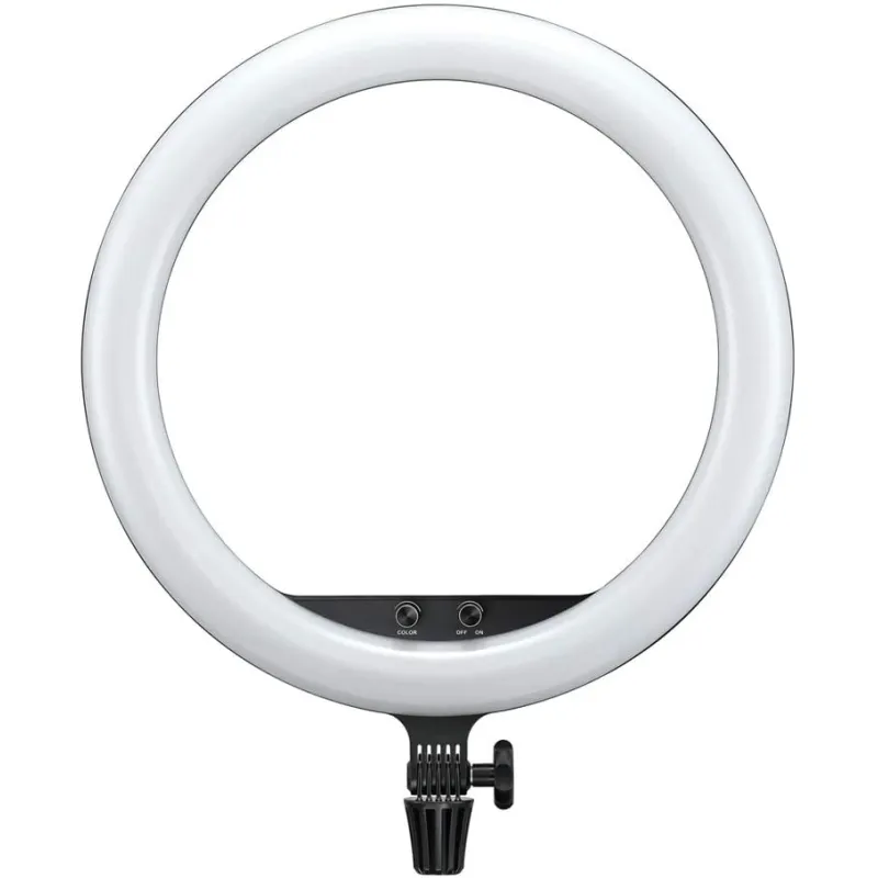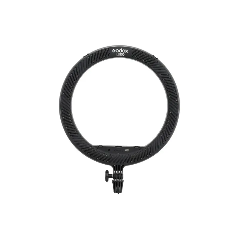 Godox melnā LR150 divkrāsu LED gredzenveida gaisma ar atšķirīgas formas gaismas ķermeņiem ar mainīgu krāsu temperatūru no 3000 līdz 6000 K, lai pielāgotos citiem ķermeņiem, apkārtējās gaismas apstākļiem vai vienkārši radošai izpausmei. Gaismu var piestiprināt pie komplektā iekļautā gaismas statīva 240F vai papildu satveršanas galvas, ļaujot fotografēt caur to, lai iegūtu zīdaini vienmērīgu gandrīz bezēnas efektu, kas ir glaimojošs jūsu talanta sejas tonim. Ideāli piemērots selfijiem, un komplektā ir iekļauts viedtālruņa turētājs. Prēmija ir unikālā apļveida forma, kas atspoguļojas jūsu objekta acīs.