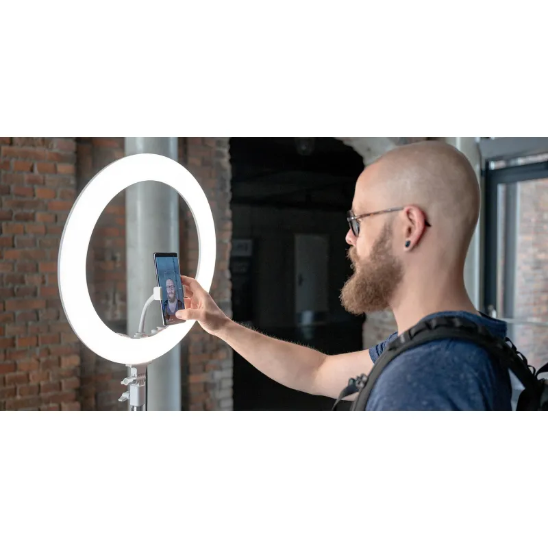 Newell RL-18A LED Ring Light - WB (3200 K - 5500 K) - Arctic White ir universāla ierīce, ko var izmantot portretu, produktu un makro fotogrāfijai. Tā labi noderēs arī vlogeriem un cilvēkiem, kas veido videoklipus Twitch, TikTok vai YouTube, papildinot jūsu mājas studiju. Newell RL-18A ir ideāli piemērots grima un grima māksliniekiem, nodrošinot vienmērīgu sejas apgaismojumu. Ergonomiskā jaudas un krāsu temperatūras regulēšana ļaus precīzi pielāgot lampas parametrus atbilstoši jūsu pašreizējām vajadzībām. Tālvadības pults, statīvs un viedtālruņa turētājs ļaus ātri un ērti mainīt kadrus, pārvaldīt gaismu un radīt vēl labākas fotogrāfijas un video!