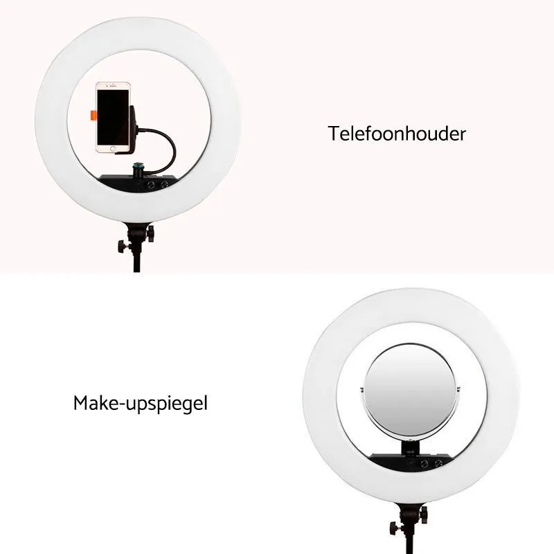 Caruba Round Vlogger 18 collu gaismas diode ir ideāla gredzena lampa vlogeriem un modeļu fotogrāfiem. Lampai ir regulējama krāsu temperatūra no 3200 līdz 5800K, kas ļauj iestatīt apgaismojumu jebkurā situācijā. Ar komplektā iekļauto viedtālruņa turētāju un spoguli varat uzņemt labākos pašbildes.