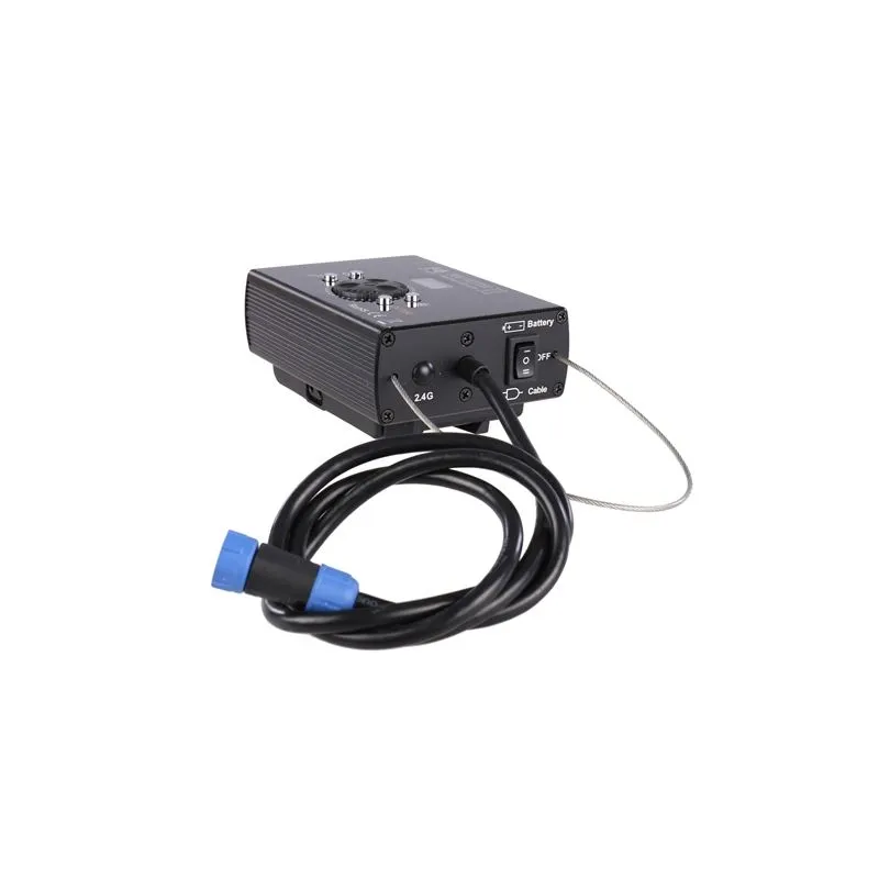 This controller has a 4-pin connector. You can connect an extension cable to this (see optional accessories). On the back you can attach an optional Sony V-mount battery. This product only includes a separate controller, so an AC cable or antenna is not included.