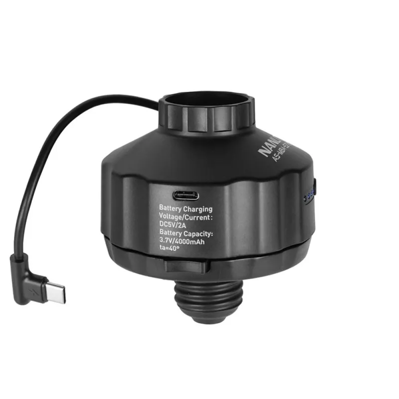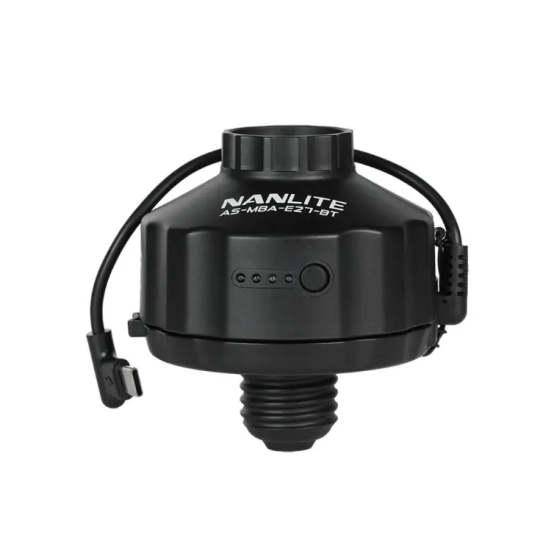 Atvienojamais E27 skrūves pamats un 1/4-20 montāžas saņēmējs ļauj ērti uzstādīt šo akumulatora adapteri dažādās vietās.