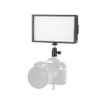A diffuser panel is included in delivery which ensures a softer light characteristic and therefore is ideal for the portrait and reportage fields. The diffuser panel is simply attached with magnets, which allows a quick attachment and detachment. As no elements are being worn down this way, the lifetime of the LED light and diffuser panel is considerably increased. The LED is mounted via a stationary accessory shoe with 1/4 inch thread. Additionally, a ball head with accessory shoe is available to you, which allows you to tilt the LED light and therefore determine the light direction even more precisely.