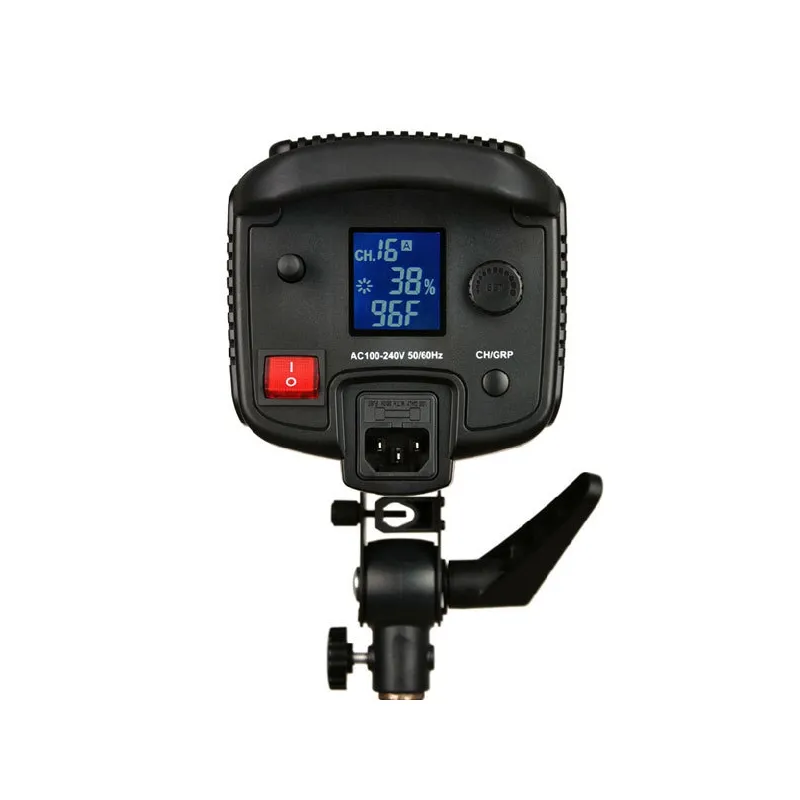 Can be used for many purposes The display on the back clearly shows the most current settings. In addition, the last used settings are automatically saved by the SL100Y. The versatility of the lamp is made possible by the Bowens S bayonet mount, which makes it possible to attach all kinds of light distorters to the lamp. There is also an umbrella holder. ,