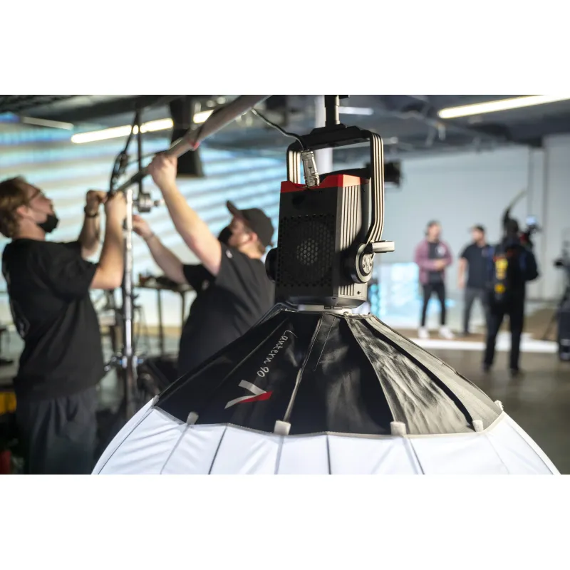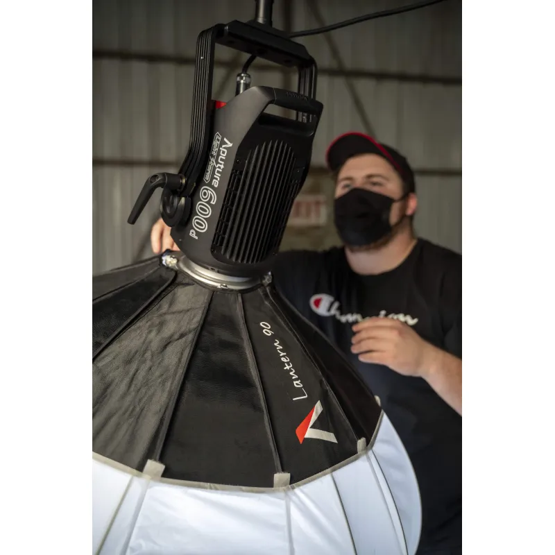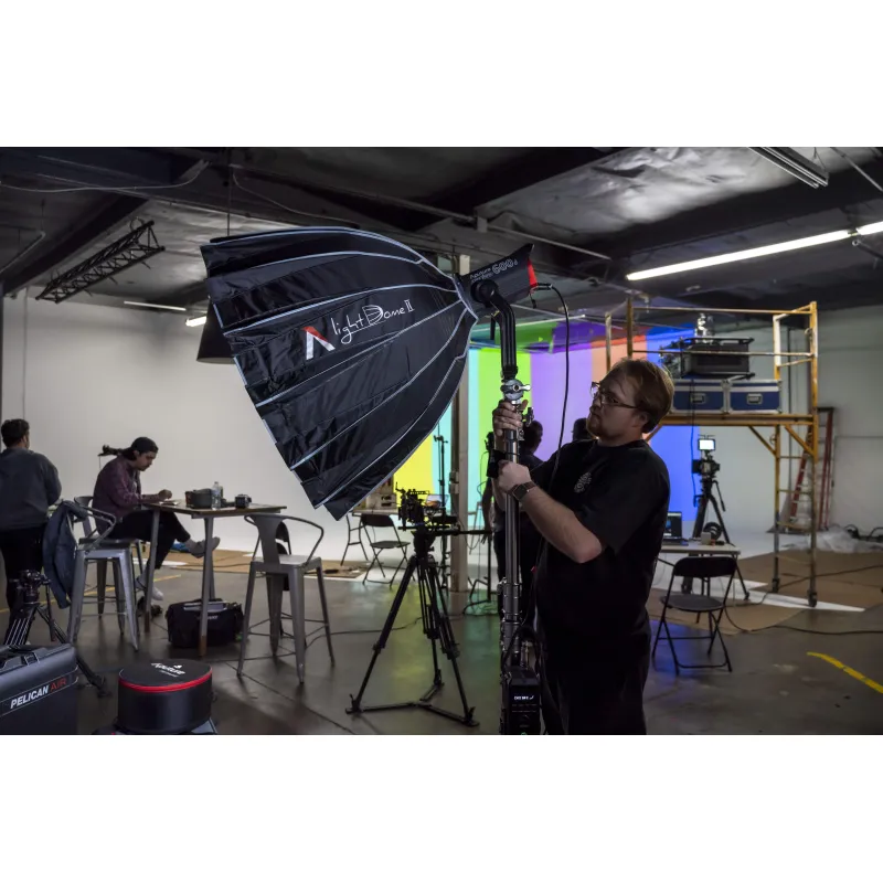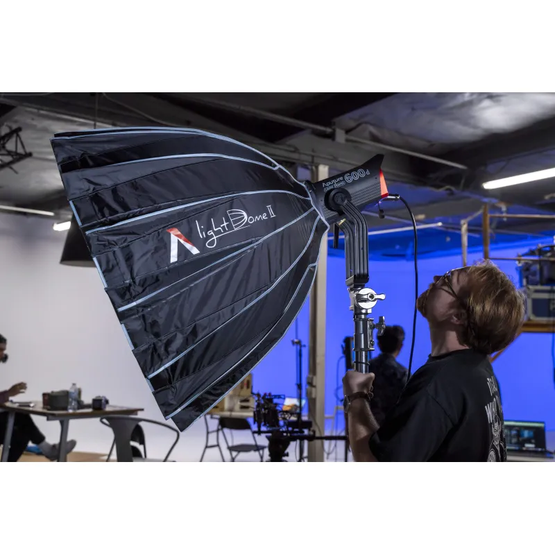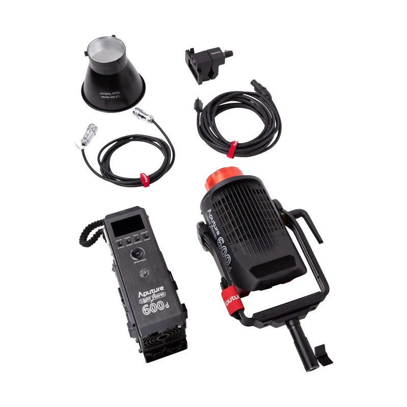 LS 600d Pro Light Storm dienasgaismas LED gaisma no Aputure ir jaudīgs COB LED ķermeņi ar plašu jaudu, vadības iespējām un izvadi, kas ir salīdzināma ar 1200 W HMI, papildināta. ar 55° hiperreflektoru. Precīzijas armatūrai ir stabila 5600 K krāsu temperatūra ar augstu CRI/TLCI vērtējumu 96, kas ir lieliski piemērots atrašanās vietas fotografēšanai ārā vai vietās, kur dominē citi dienasgaismas līdzsvaroti ķermeņi, piemēram, HMI. Papildus jaudai kontrole ir 600d Pro dizaina virzītājspēks. Gaismai ir arī neskaitāmas bezvadu vadības metodes, piemēram, iekļautā 2,4 GHz tālvadības pults, Sidus Link mobilā lietotne un iebūvēta bezvadu DMX vadība. Tam ir četras aptumšošanas līknes: lineāra, eksponenciāla, žurnāla un S-līkne, lai nodrošinātu precizitāti neatkarīgi no izvēlētā spilgtuma līmeņa. Lai gan jūs varat veikt pielāgojumus lokāli armatūrai, varat tos veikt arī bezvadu režīmā līdz 328 collu attālumā, izmantojot šīs metodes. Tas ir īsts atribūts gaismām, kas uzstādītas virs galvas vai grūti sasniedzamās vietās.