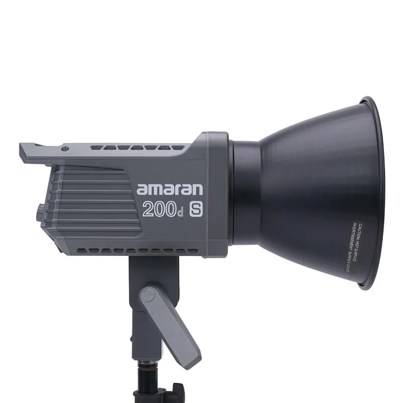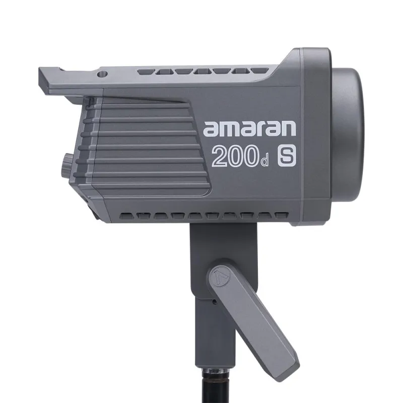 Amaran 200d S ir 200W dienasgaismas priekšgala stiprinājuma punkta avota gaisma ar integrētām vadības ierīcēm, daudzpusīgas enerģijas iespējas un modernizēts LED mikroshēmojums, lai palielinātu krāsu kvalitāti un spektrālo reprodukciju.