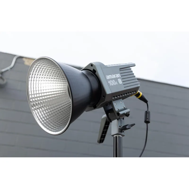 Amaran 100d s ir 100W dienasgaismas priekšgala stiprinājuma punkta avota gaisma ar integrētām vadības ierīcēm, daudzpusīgas enerģijas iespējas un modernizēts LED mikroshēmojums, lai palielinātu krāsu kvalitāti un spektrālo reprodukciju.