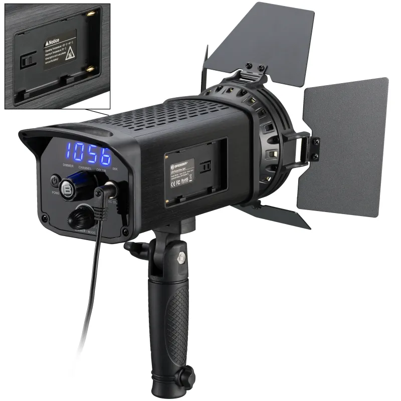 BRESSER SP-60 LED Fresnel laterna ar maināmu projekcijas leņķi nodrošina punktveida apgaismojumu visdažādākajiem lietojumiem, tostarp fotostudijām, filmēšanai uz vietas, fotografēšanai un video uzņemšanai.