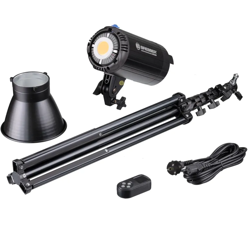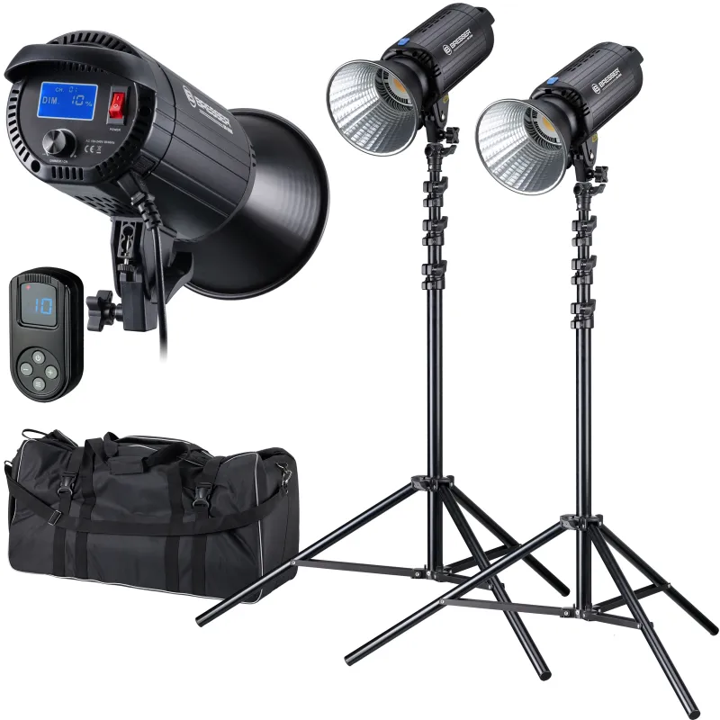 BRESSER Daylight LED komplekts ar spēcīgu 200 W izejas jaudu un 18 500 lūmeniem izturīgā alumīnija korpusā, kā arī beztrokšņa dzesēšanu un temperatūras kontroli, ieskaitot divus statīvus un atstarotāju, piedāvā visu nepieciešamo, lai uzreiz sāktu darbu.