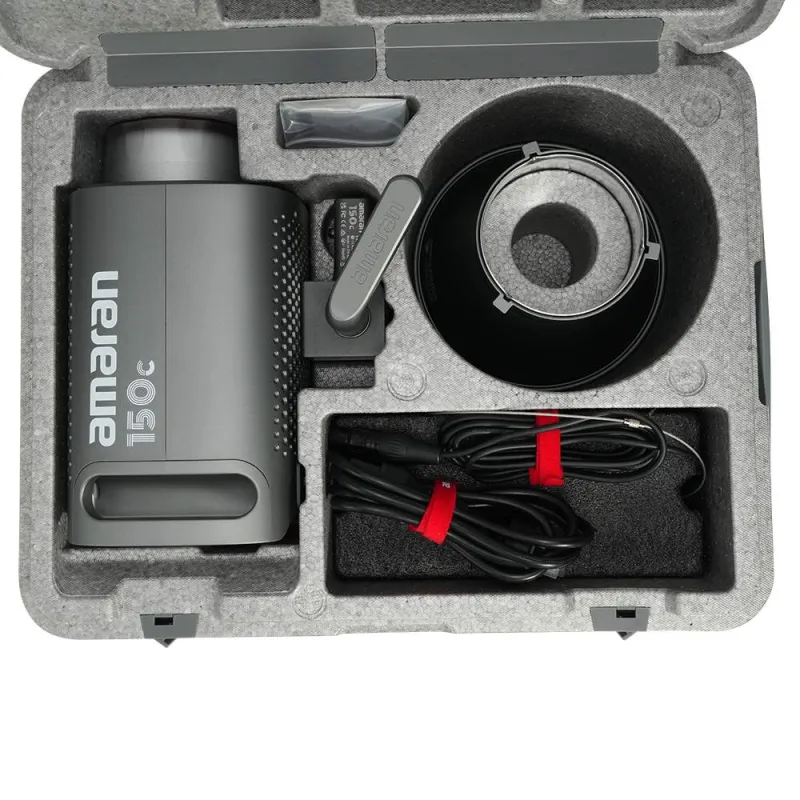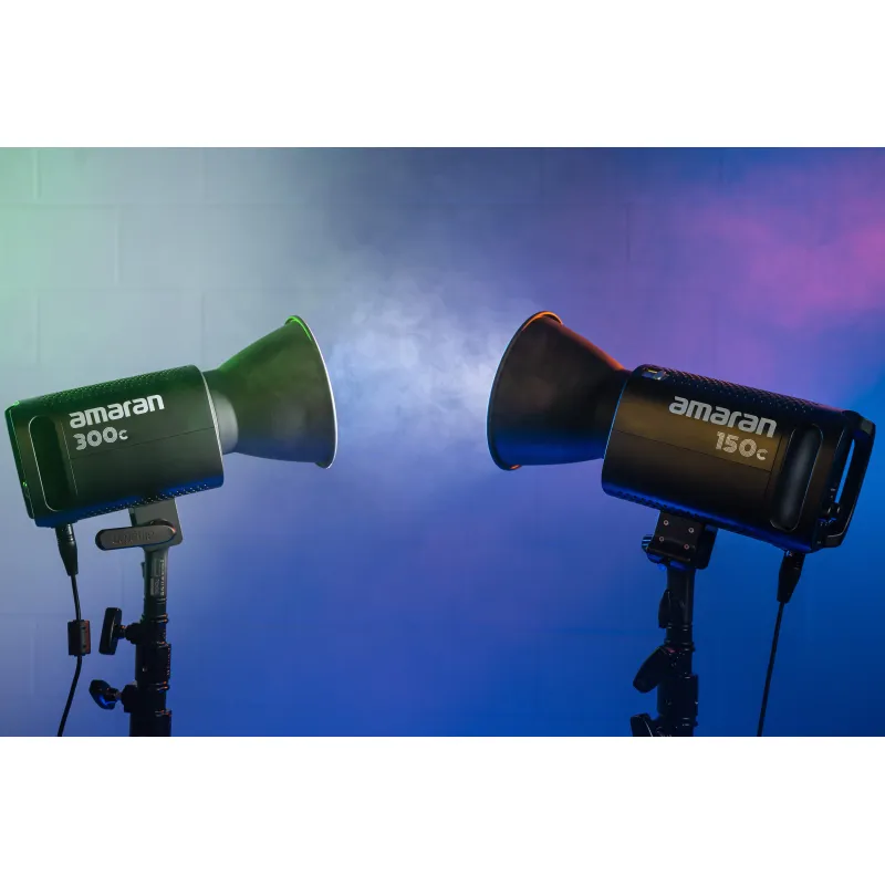 Spēcīgs punktveida gaismas avots, kas apvieno RGBWW pilnkrāsu vadību un Bowens stiprinājuma daudzpusību, - amaran 150c RGB LED monolight ir gaismas ierīce ar mainīgu krāsu temperatūru, kas ir ideāli piemērota filmu veidotājiem, fotogrāfiem un radošajiem darbiniekiem. Jums ir iespēja modificēt palielināto vai izkliedēto izstarojumu un pilnīga krāsu kontrole visā paplašinātajā 2500 līdz 7500 K CCT diapazonā. Ar ļoti precīzu krāsu atveidi 150c nodrošina arī augstas kvalitātes gaismas izvadi ar līdz 15 610 luksiem 3,3' augstumā, izmantojot komplektā iekļauto atstarotāju. 150c nodrošina deviņus iebūvētos specefektus - paparaci, uguņošanu, zibens, bojātas spuldzes, TV, pulsējošu, stroboskopa, sprādziena un uguns. Jūs varat atrast pareizo apgaismojuma līmeni savai ainai, izmantojot 0 līdz 100 % bezpakāpju regulējamu aptumšošanu.