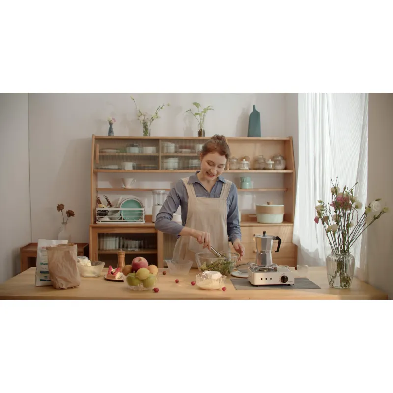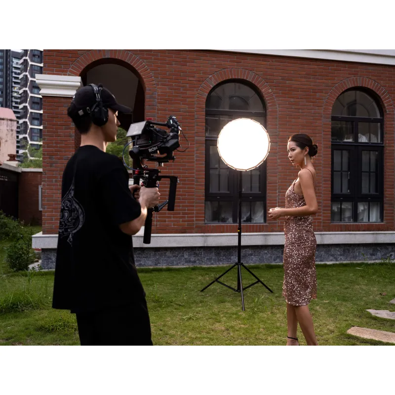 LED ir aprīkots ar rokas V-mount akumulatora rokturi, kas nodrošina stabilu mobilo barošanas avotu papildus tradicionālajam maiņstrāvas risinājumam. Ergonomiski izstrādātais rokturis nodrošina ērtu apstrādi, lai uzlabotu efektivitāti uzņemšanas laukumā vai uz vietas, nodrošinot ātru mobilās fotografēšanas scenāriju.